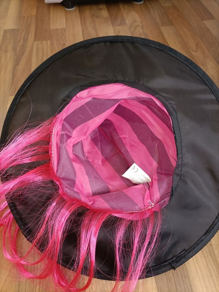 Chapeau déguisement de sorcière avec faux cheveux roses - photo numéro 5