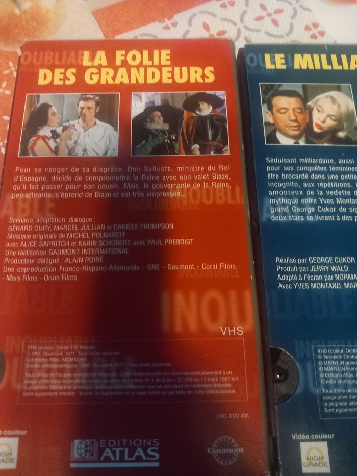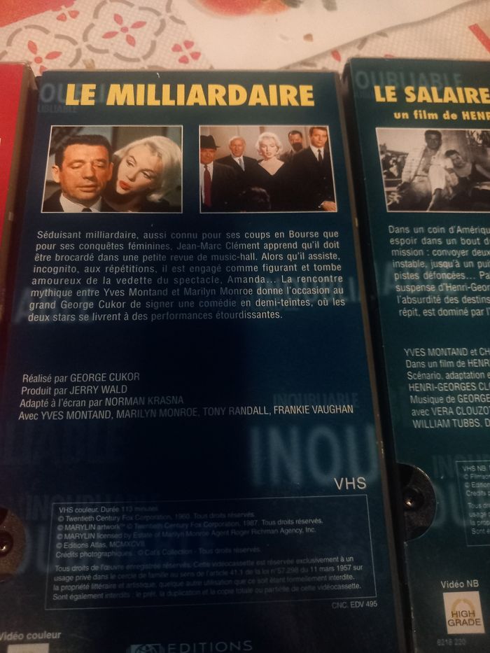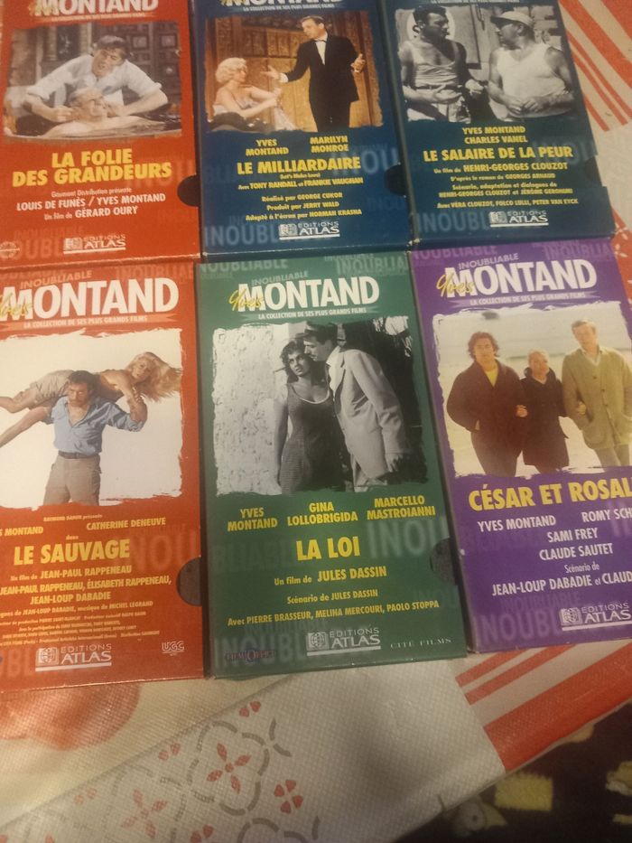 6 VHS films avec Yves Montand 1 : Le salaire de la peur 2 : Le milliardaire 3 : César et Rosalie 4 : La loi 5 : La folie des grandeurs 6 : Le sauvage En bon état