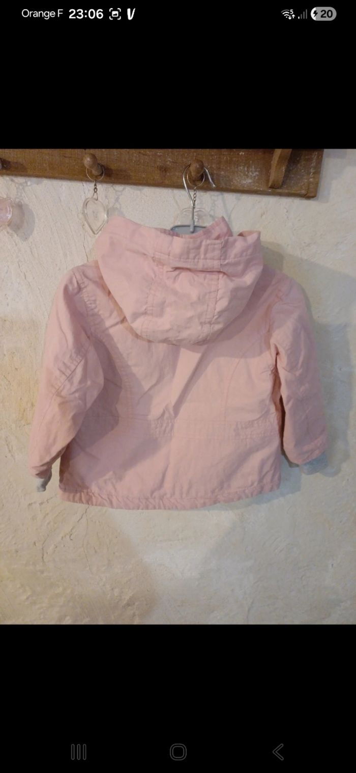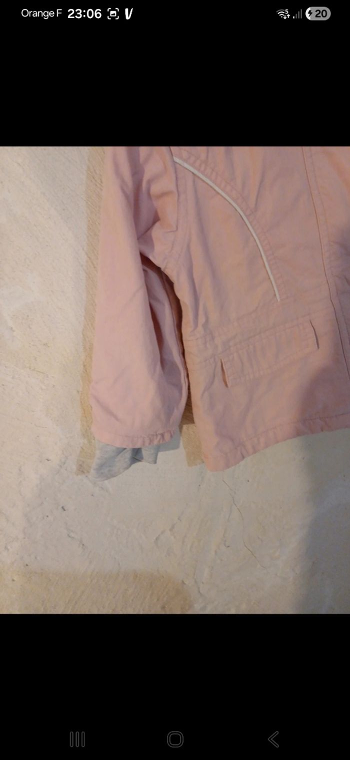 Veste zippée à l avant avec pressions par-dessus. Avec capuche qui peut se retirer par système de boutons. Deux poches à l avant