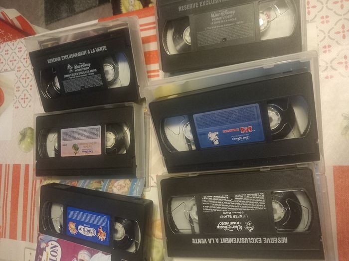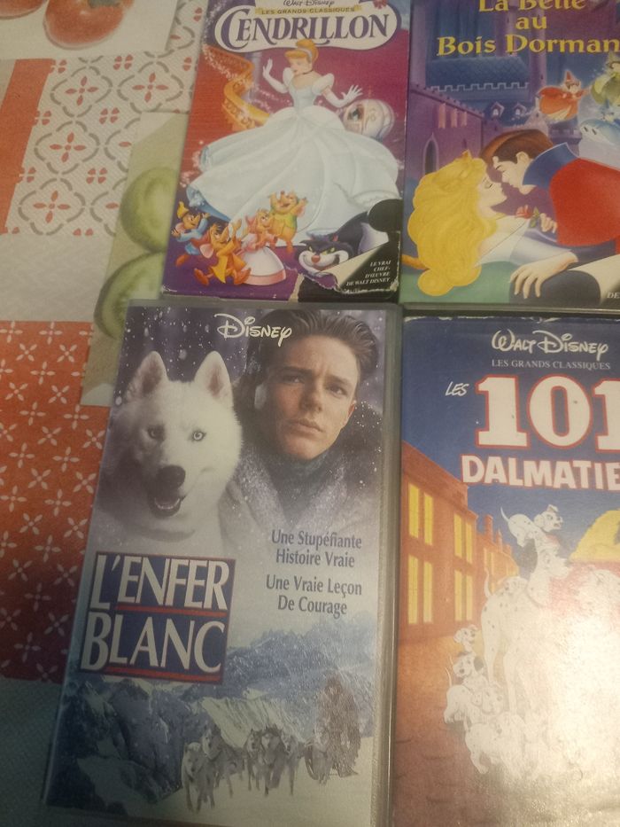 6 VHS films Wald Disney 1 : L'enfer blanc 2 : Les 101 Dalmatiens 3 : Le livre de la jungle 4 : Cendrillon (pochette abîmer voir photos) 5 : La belle au bois dormant 6 : 20000 Lieues sous les mers En bon état