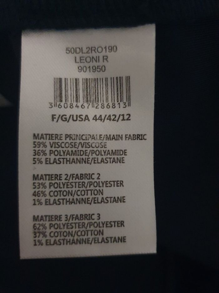 🌿 Je craque pour cette robe Diane Laury , une marque française qui à a cœur de sublimez toutes les silhouette tout en utilisant majoritairement des matières naturelles.  Cette robe allie confort et élégance avec ses jeux de textures et ses motifs géométrique.  Sa coupe droite légèrement structurée offre une silhouette moderne et flatteuse. 💙 Un magnifique travail de bi-matieres. Le buste arbore un motif éventail "Art Déco" très tendance,  tandis que le bas présente un tissage graphique fin. Les côtés et le dos sont de couleur bleu marine uni pour un effet amincissant immédiat. 🩷 Confectionnée dans un mélange de matières haut de gamme , elle est à la fois douce, respirante et légèrement extensible grâce à l'elasthanne.  💜 Parfaite avec une paire de sandales pour une tenue de jour , ou avec des escarpins pour une soirée ou cérémonie.  👉 Marque: Diane Laury  Taille étiquette : 44 (France) / 42 (Allemagne) / 12 (USA) 📏 Pour vous assurez qu'elle vous ira parfaitement fiez-vous à la grande sagesse de Maître Ruban ⤵️  Longeur : 99cm  Aisselle à Aisselle : 53cm  Épaule à épaule : 41 cm  Taille: 52 cm Maître Ruban valide la taille 44 de l'étiquette,  la coupe droite ne Marque pas la taille et laisse une aisance confortable Parfaite pour masquer les petites rondeurs.  🧶 Tissu principal : 59% Viscose, 36% polyamide, 5% Elasthanne.  Empiècement : Mélange de Coton et polyester.  🌟 Très bon état  💰 Prix boutique : environ 95€ 📨 Envoi rapide et soigné