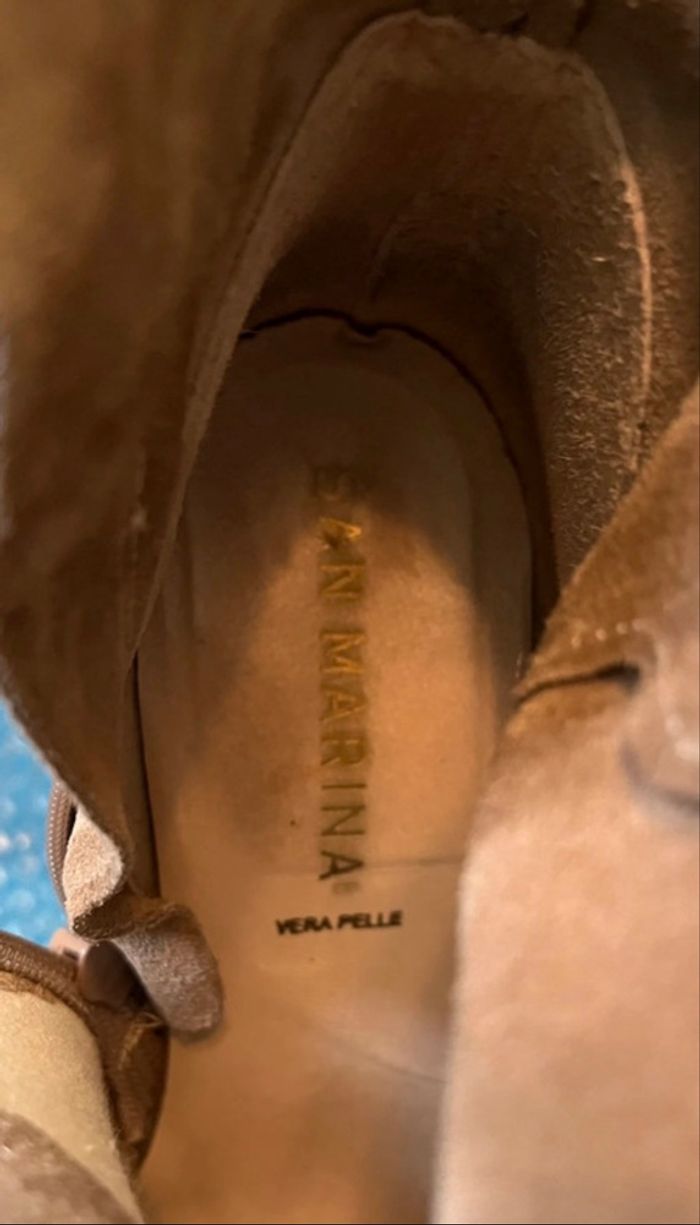 Je vends une paire de bottines en daim beige pour femme pointure : 40 Marque : San Marina État : très bon état Prix: 10€ N'hésitez pas à consulter mes annonces, pratiquement tout ce que je vends est neuf #labonneaffaireas