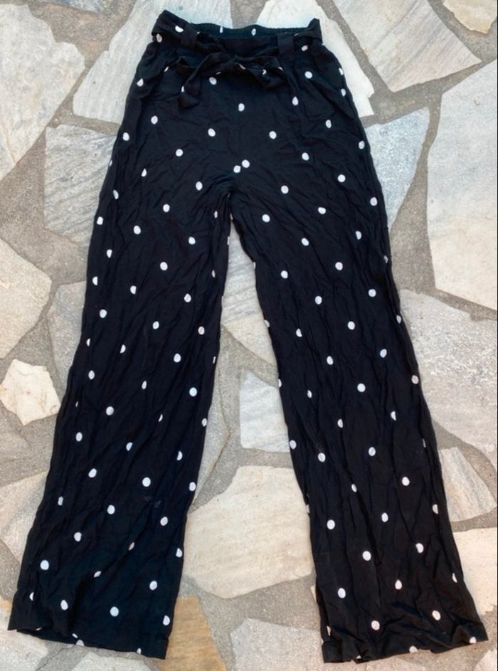 Pantalon léger idéal été couleur noir à pois blanc bon état taille 34 marque primark