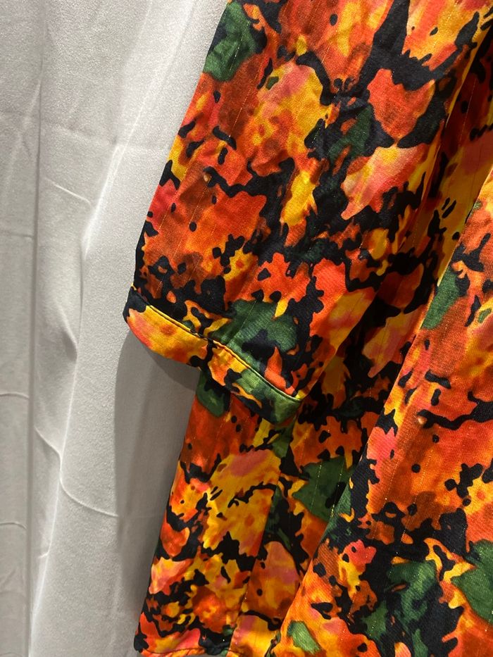 Jamais porté Aisselle : 61,5 cm Longueur : 93 cm Il y a environ 7 cm de différence entre la longueur devant et derrière (légèrement plus long à l’arrière). Matière : 100 % polyester.