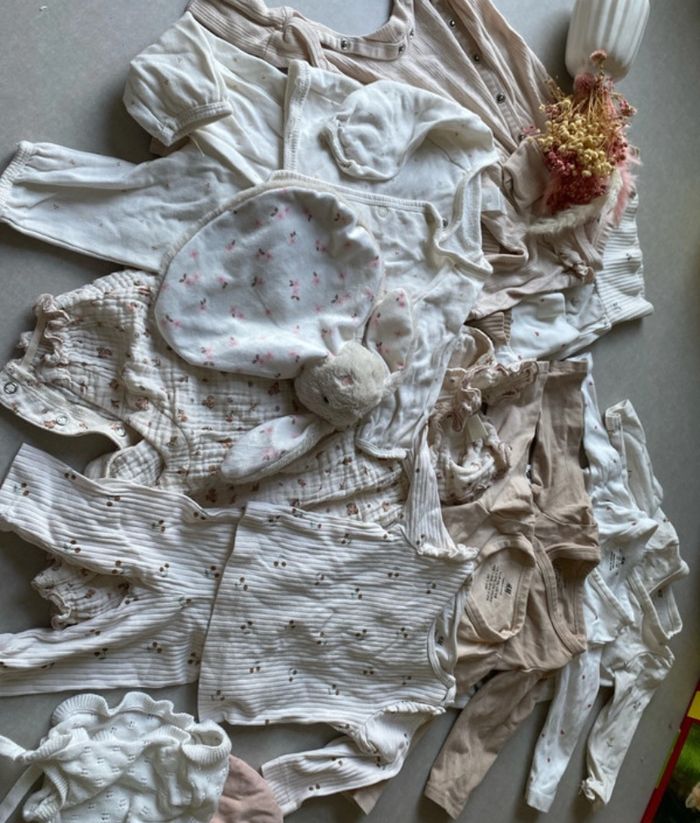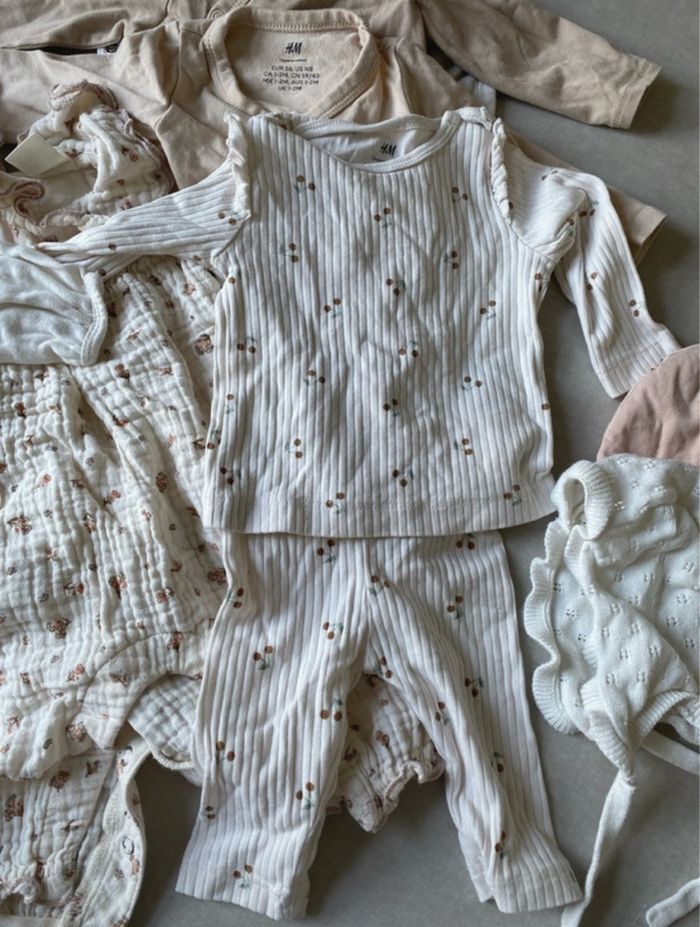 Lot 14 vêtement bébé fille 1-2mois 56 cm parfait état  - photo numéro 1