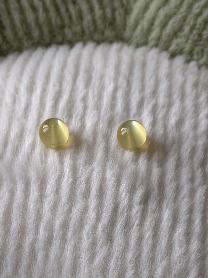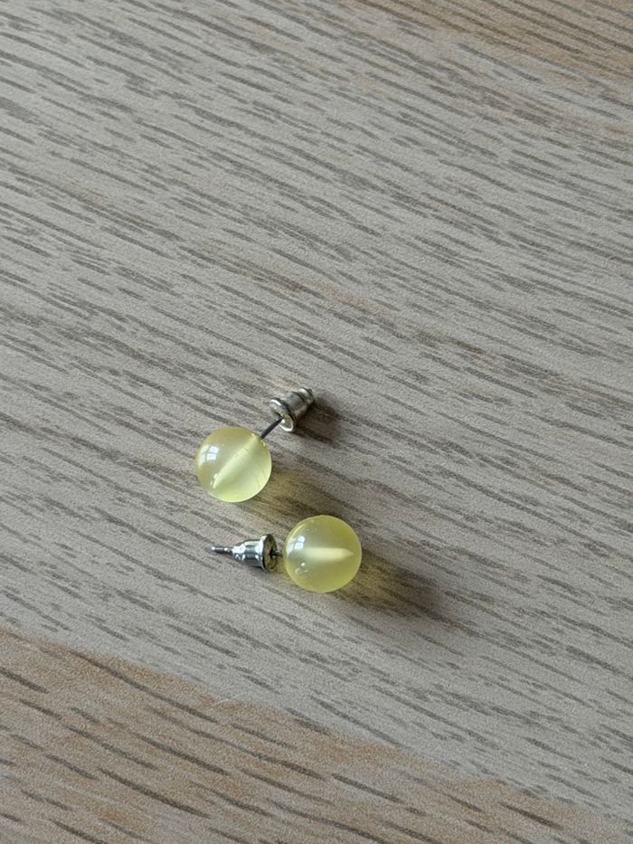 Boucles d'oreilles, clous, boule jaune transparente, très bon état.