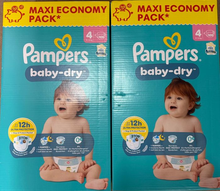 2 paquets de 108 couches Pampers Baby Dry Taille 4