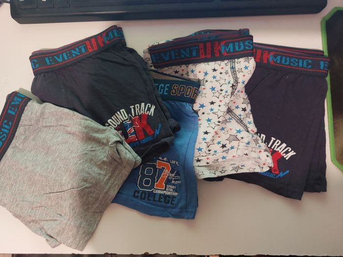 lot de 5 caleçons 12/14 ans en très bon état voir pas porté.marque kiabi ou gémo je ne sais plus. n'hésitez pas à regrouper vos achats.