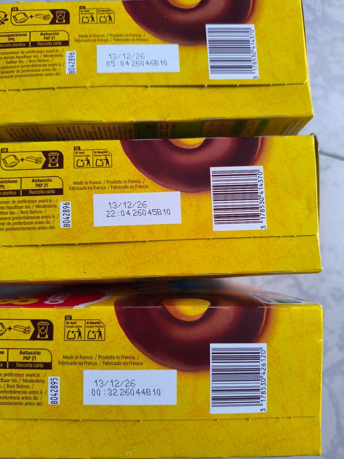Lot de 3 boîtes de 12 doonuts nappés chocolat chacune, saint Michel, neuves, jamais ouvertes.