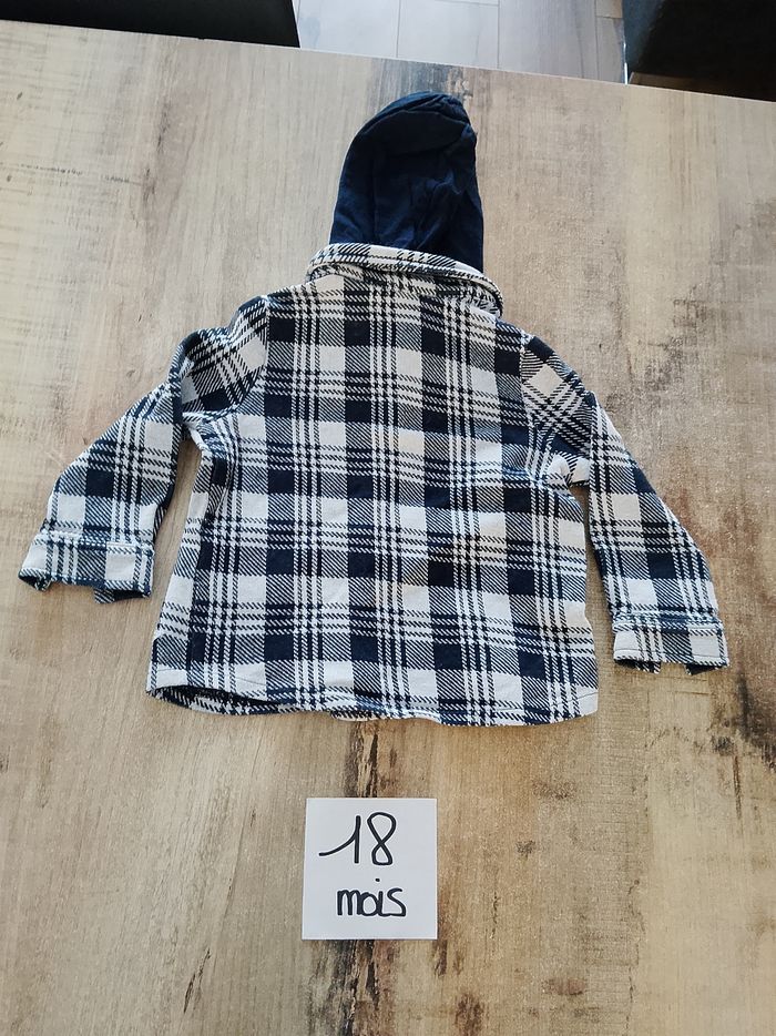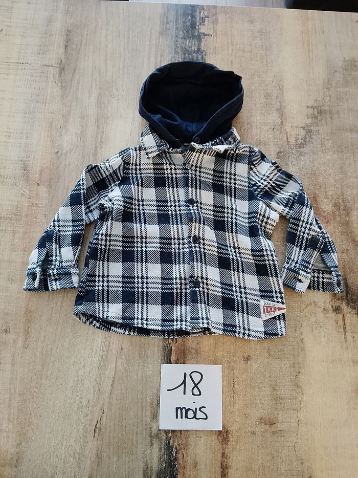 Chemise garçon 18 mois IKKS. Matière mi-épaisse. La capuche se retire. Très bon état maison non fumeur, mais avec animaux.