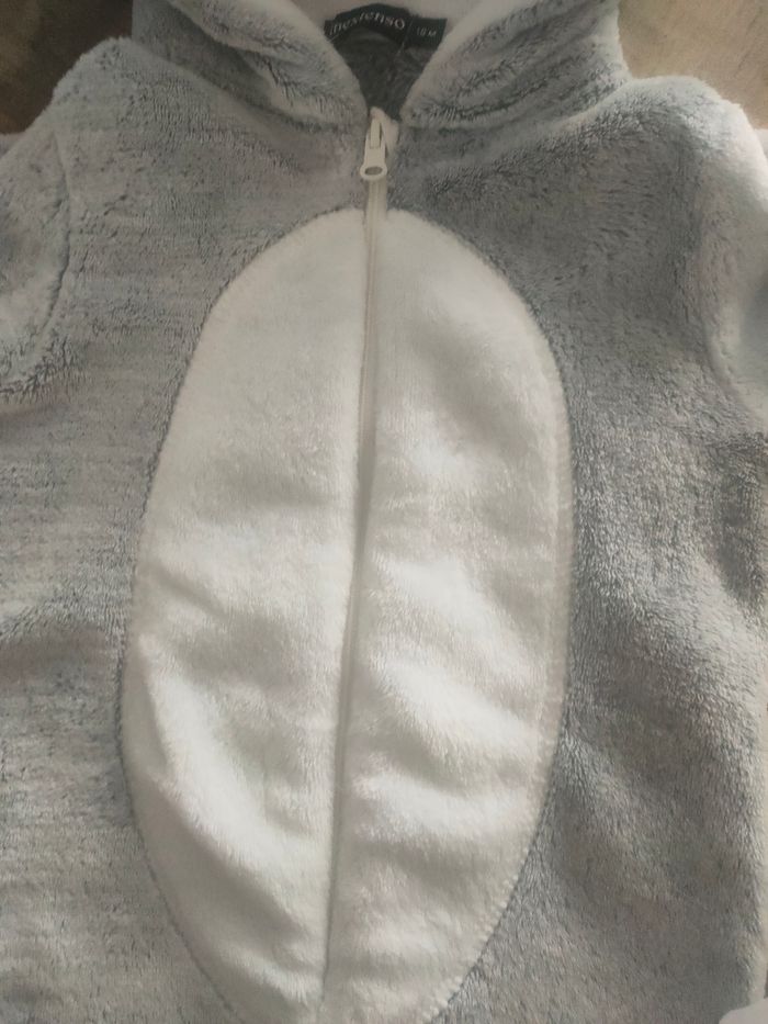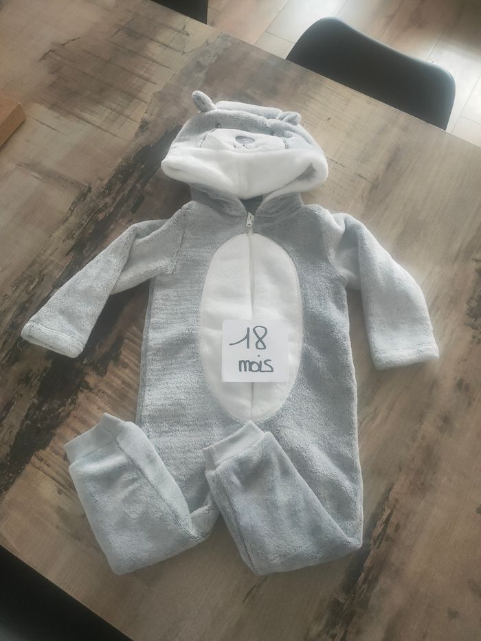 Combinaison en pilou-pilou pour garçon en taille 18 mois. Très bon état, deux petites taches sur la fermeture mais qui ne se voient pas une fois qu'elle est fermée sans trou