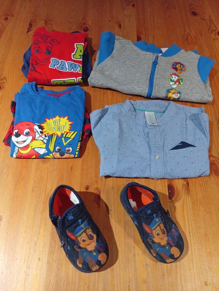 Lot en 18 mois comme neuf 1 gilet 1 pyjama 1 tee shirt 1 paire de chaussons en 22 1 chemise en parfait état. Également disponible de nombreux vêtements en 24 mois et en 4 ans. N'hésitez pas à me contacter, possibilité de faire un lot à petit prix.