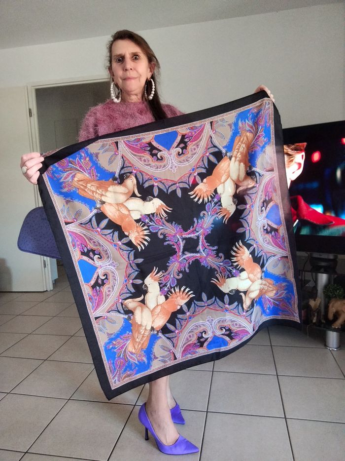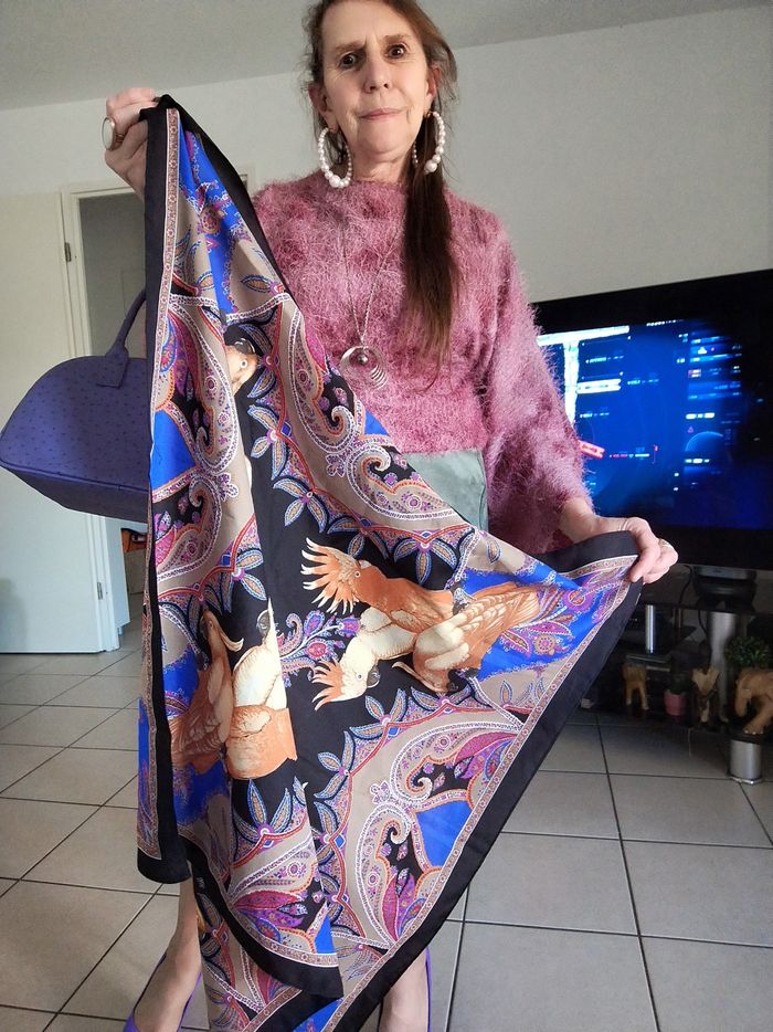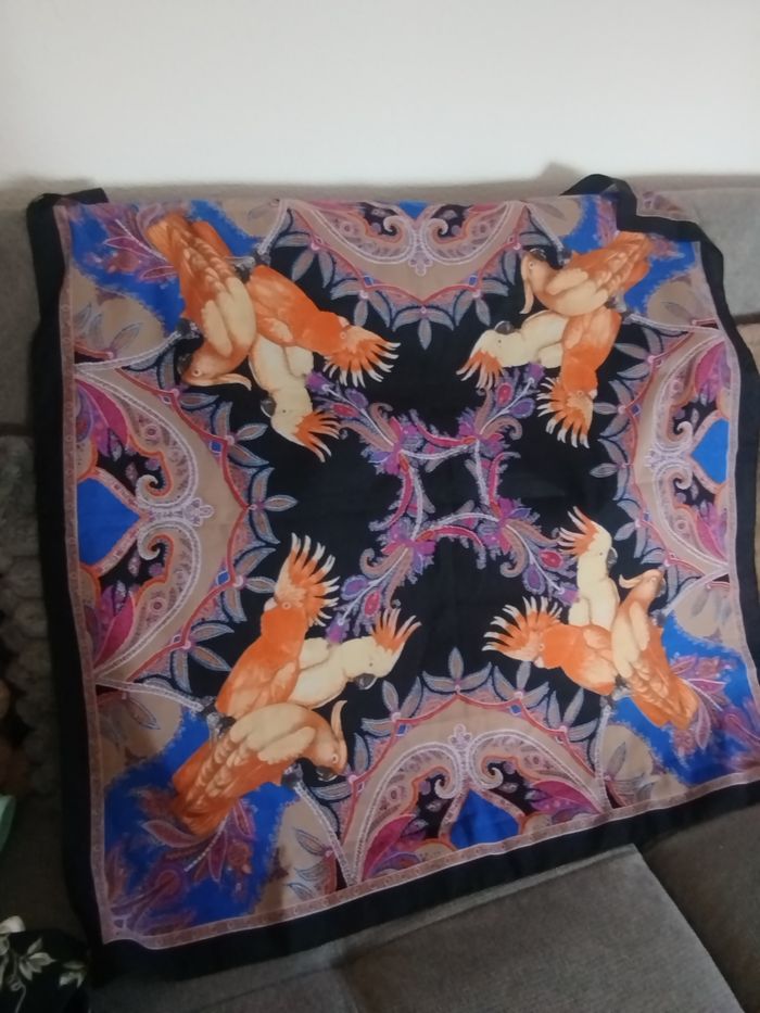 Bonjour magnifique foulard rayon appartement à ma grande tante dimension 86 x 86 cm en excellente état pièces vintage