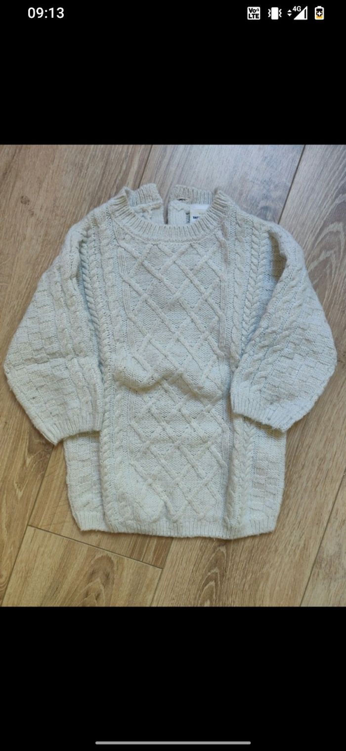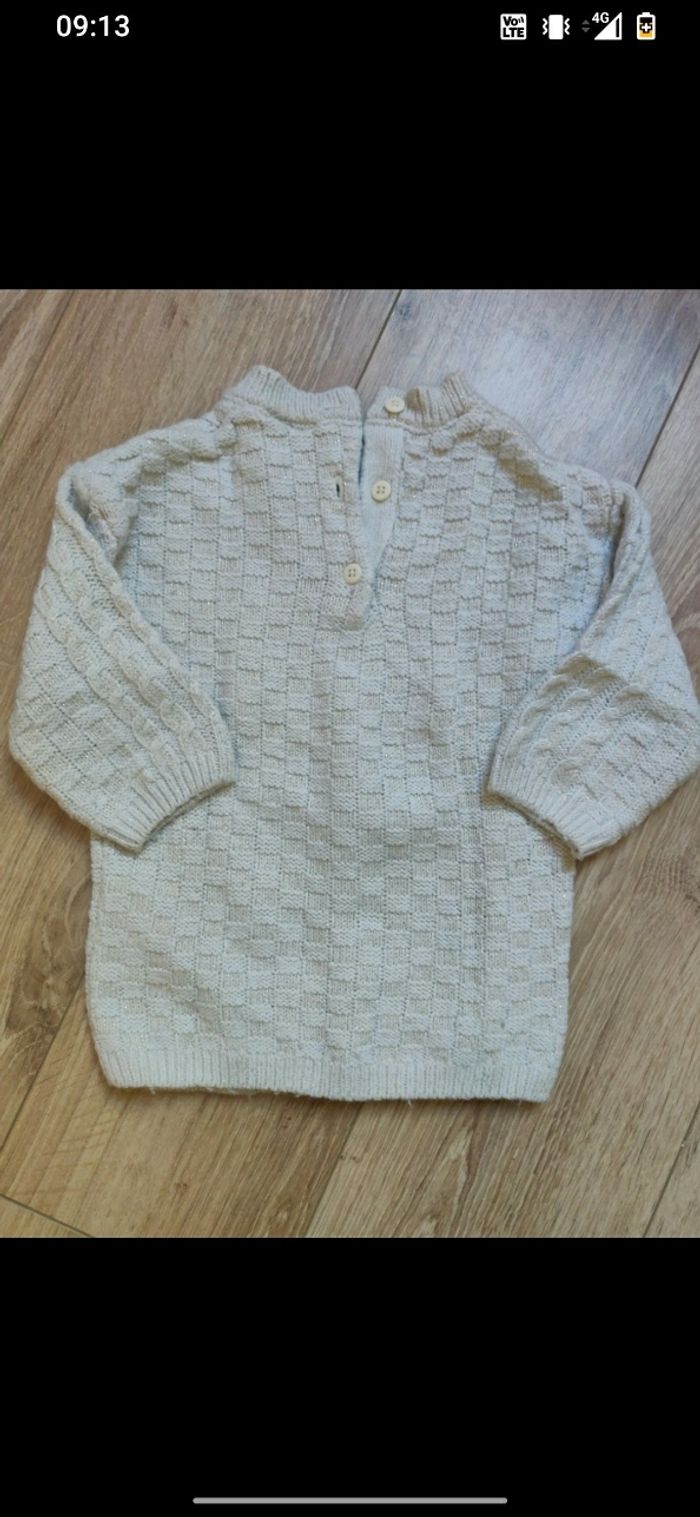 Robe en laine de marque TAO couleur crème avec fil doré taille 12 mois en très bon état.