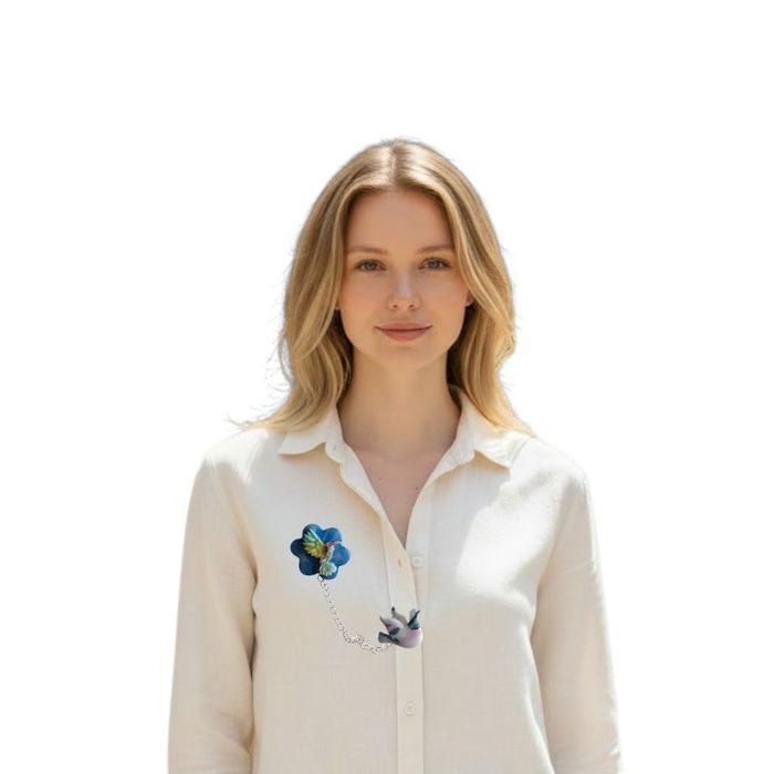 Laissez-vous séduire par cette broches fleur et Colombe en pâte polymère, entièrement façonnées à la main avec soin et passion. Chaque pièce est une création artisanale unique, modelée et travaillée avec délicatesse afin de révéler des reliefs subtils et un effet légèrement brillant qui capte la lumière. Disponibles en plusieurs coloris (bleu, vert, rose ou en dégradé), cette broches apportent une touche d’élégance et de poésie à vos tenues. Légères et agréables à porter, elles subliment aussi bien une veste, un manteau, un pull ou même un sac. Chaque création est réalisé en petite série, ce qui garantit l’authenticité et le charme du fait main. Une création délicate, idéale pour offrir ou pour se faire plaisir avec un accessoire original et raffiné. Caractéristiques : Ensemble fleur, chaîne et Colombe  Couleurs fleur Bleu, l'oiseau multicolore et la Colombie rose et blanc  Broche en pâte polymère Fabrication artisanale Pièce unique ou réalisée en petite série Pièce unique – création artisanale 100 % made in France. Vernis résine UV recto-verso