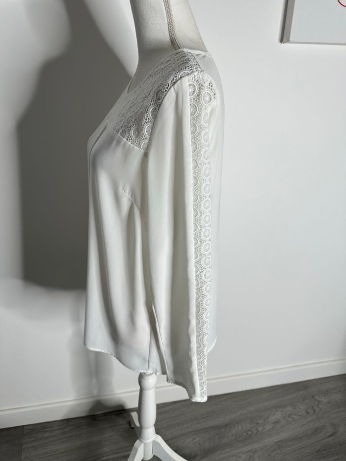Blouse blanche et dentelle Damart T38 M - photo numéro 3