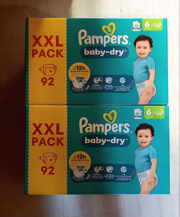 184 couches Pampers baby dry taille 6 (2 XXL Packs)