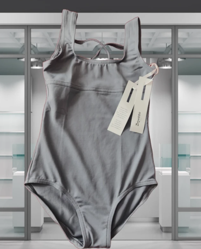 Repetto 10 ans orage PRIX 13€ NET Forme débardeur Découpe sous poitrine Encolure arrondie devant et dos Dos fantaisie Transfert transparent du logo Repetto au dos Aspect mat