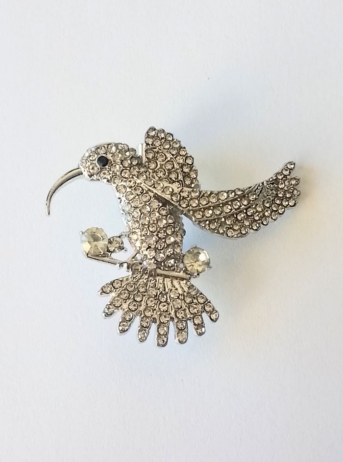 Broche bohème. Broche : colibri, strass. (bohème, boho-chic, élégant, idéal cadeau) DESCRIPTIF : Magnifique broche colibri. Couleur : blanc. Dimension : 5 cm L * 4,3 cm H Envoi rapide et soigné.