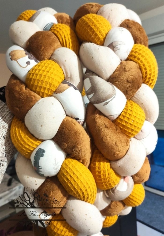Tresse de lit fine en 4 épis de 2m50 Hauteur environ 15cm Tresse de lit neuve Thème safari en folie Création Au Fil Argenté