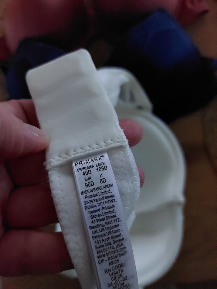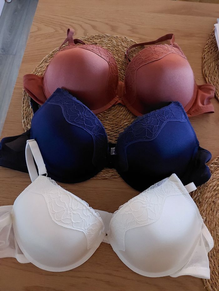 Lot de 3 soutien gorge de chez primark Rembourré Blanc, bleu, marron Taille 105D Neuf jamais porté