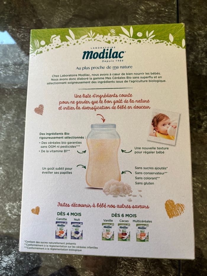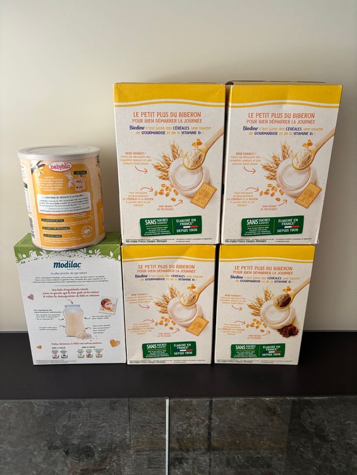 Dates d’expiration : Modilac : avril 2026 Babybio : 10 juillet 2026 Blédina saveur biscuit (x3) : 6 septembre 2026 Blédina blé et cacao : 16 août 206 Plus d’informations en mp 😉