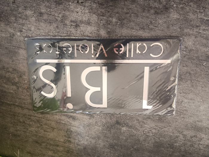 Pancarte pour façade maison noir et miroir avec marqué 1 bis calle violetas neuf dans son plastique