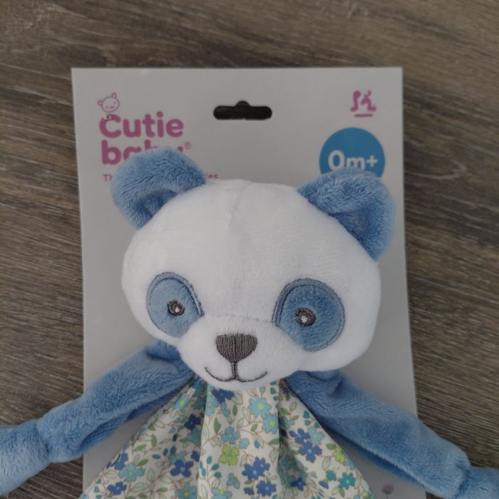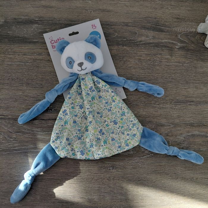 Doudou Panda avec carre de tissu fleuri 25x25 cm Neuf
