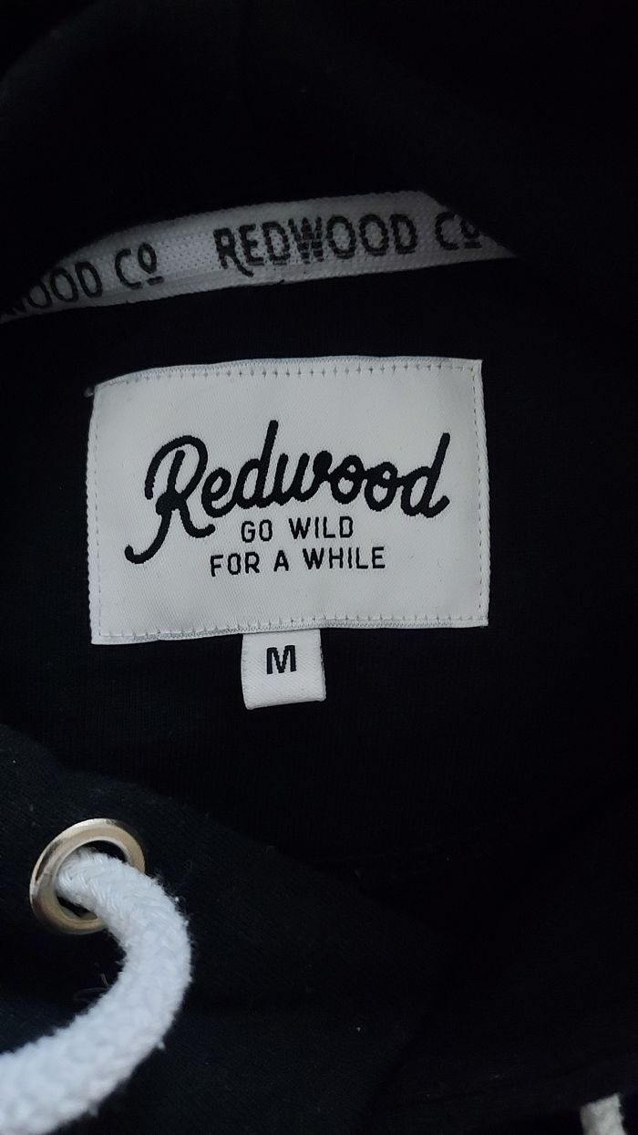 Je vends ce sweat-shirt noir de la marque Redwood Co. - Type de produit : Sweat-shirt - Marque : Redwood Co. - Taille : M - Couleur : Noir - Caractéristiques : Capuche, Imprimé logo