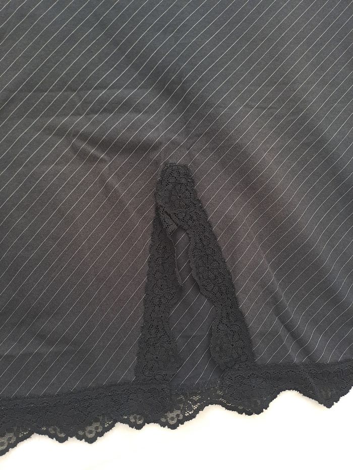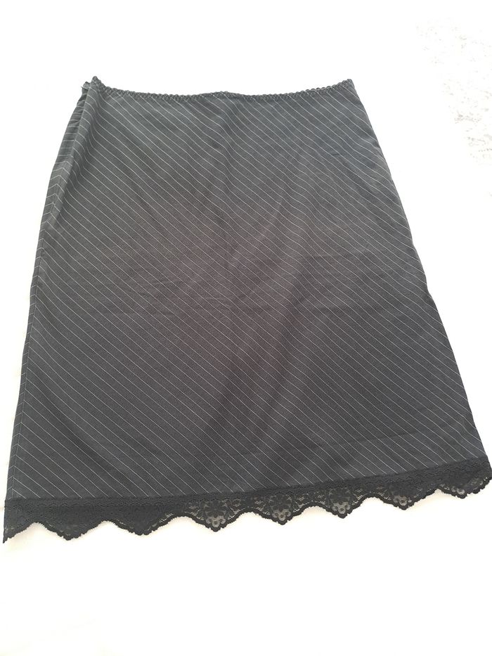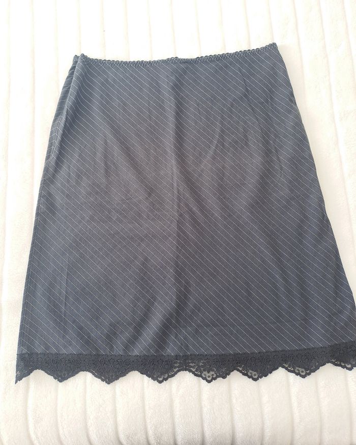 Jupe grise à rayures blanche détail dentelle, fermeture à glissière Kookaï, taille 42 N'hésitez pas à regarder mon dressing