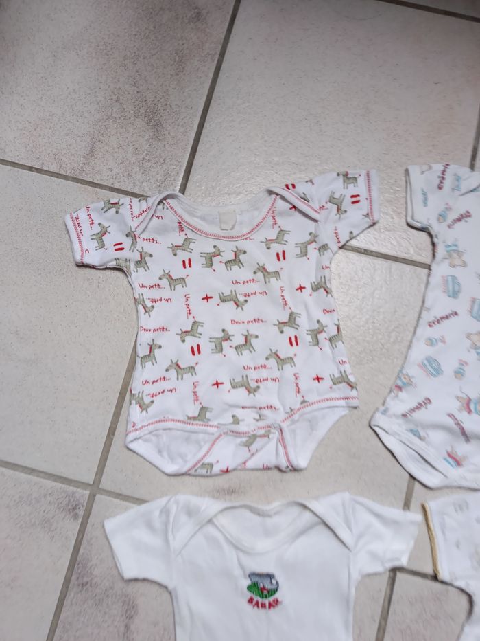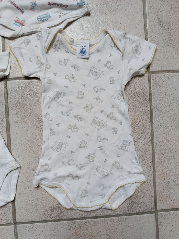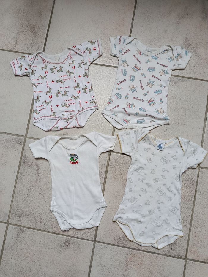 Étiquette de taille coupée Je dirais 3/6 pour les 3 premiers et taille 1 an pour le petit bateau qui a l'étiquette de taille