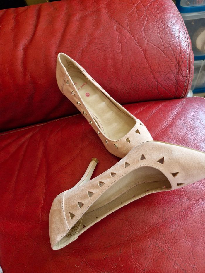 Chaussures a tallons en daim beige rosé porté une fois de marque nafnaf