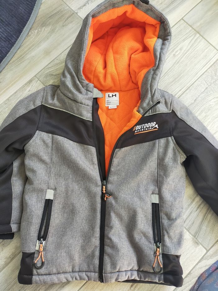 Veste manteau garçon bien chaude doublée polaire. Jolie couleurs gris Jean et orange En très bon état