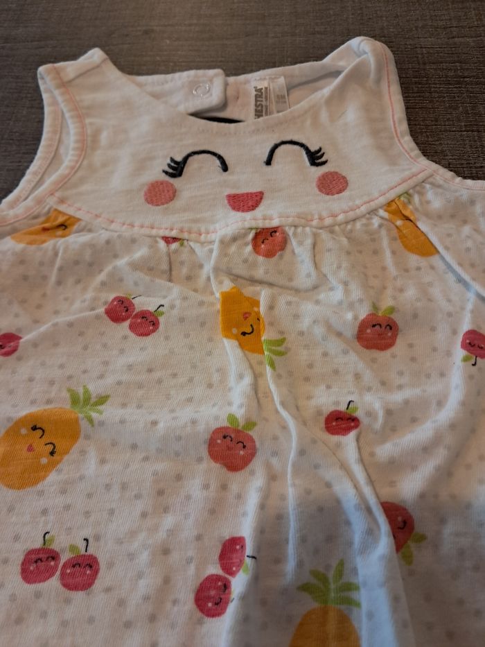Robe blanche a motif fruit Coton Marque orchestra Taille 6 mois Réduction sur les lots jusqu'a -20% Réduction sur les frais de livraison