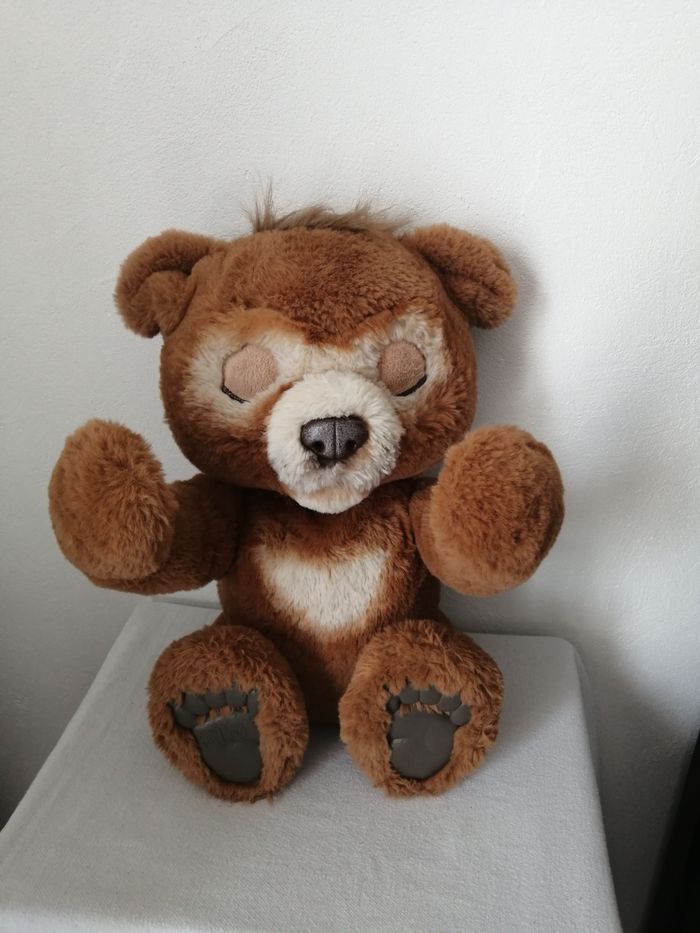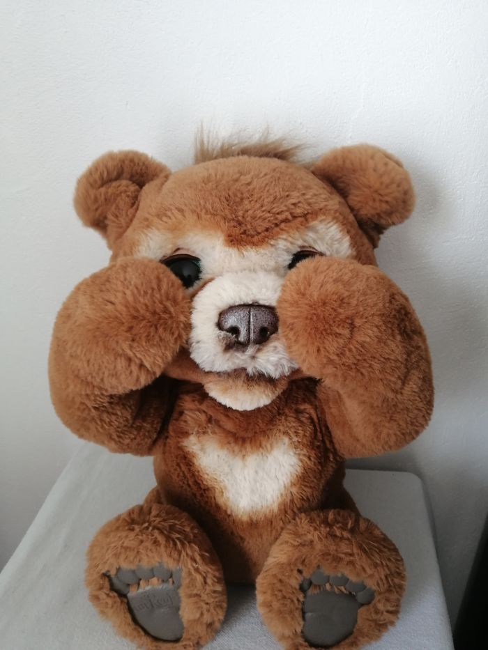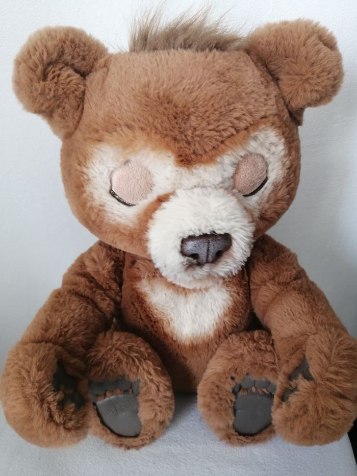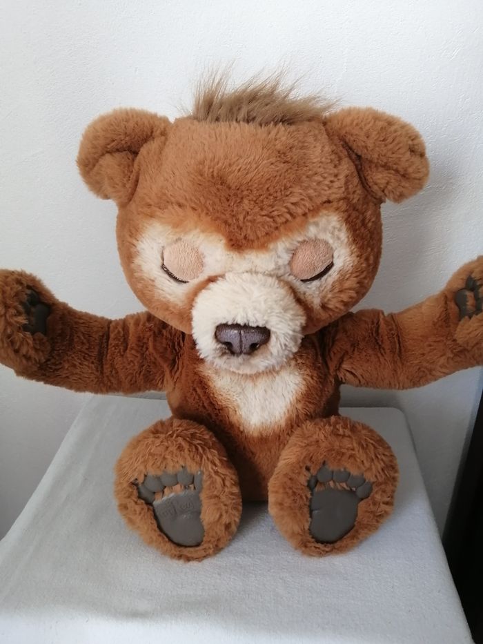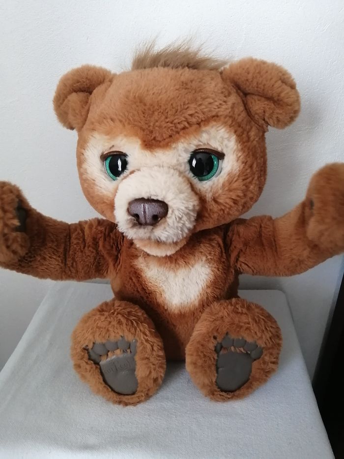 PAS D'ENVOI EN LOCKER POUR CET ARTICLE ours cubby furreal friends l'ours curieux peluche interactive assis peut également se mettre debout fonctionne à piles vendues avec effets sonores, bouge la tête, les oreilles, les bras et le museau, ouvre la bouche, cligne des yeux, musique en mode nuit etc assez lourd 39 cm assis et 45 cm debout vendu comme sur les photos sans accessoire