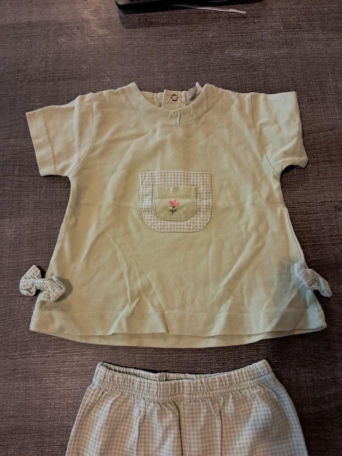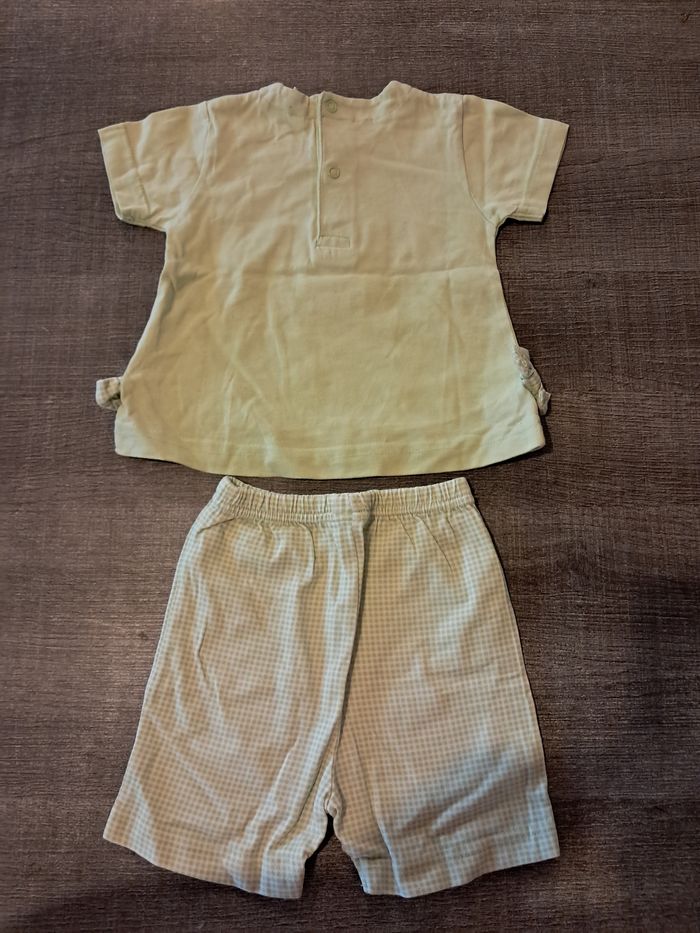 Ensemble t-shirt et short vert et blanc Coton Marque sans marque Taille 6 mois Réduction sur les lots jusqu'a -20% Réduction sur les frais de livraison