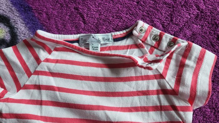 Robe manches courtes bébé – 9 mois (Mes Petits Cailloux) 100% coton, légère et agréable à porter. Motif rayures rouges et blanches, style marin. Petit nœud bleu foncé à la taille, adorable et discret. Très bon état. #mespetitscailloux #robebébé #bébéfille #9mois #100coton #robeété #rayures #lookbébé #petitprix #bonnesaffaires #beebs