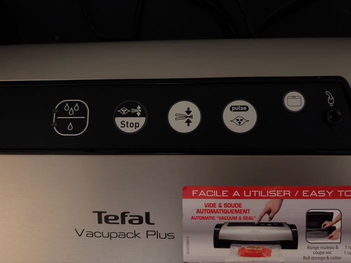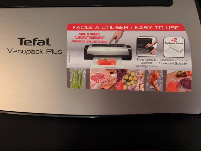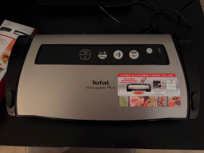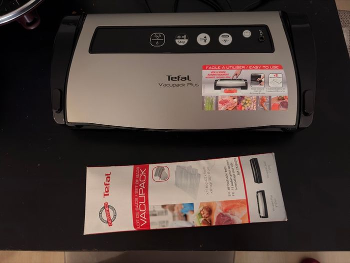 Machine emballage sous vide Vacupack plus Tefal. Servi une fois. Vendu avec un lot de sacs et 2 rouleaux. En état parfait.