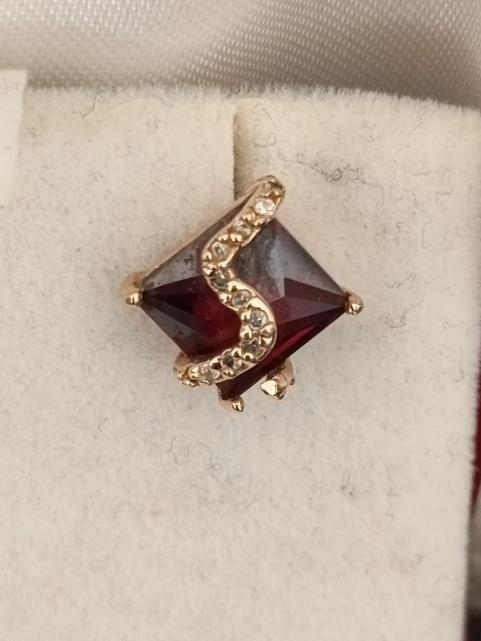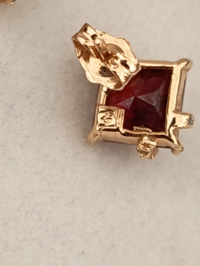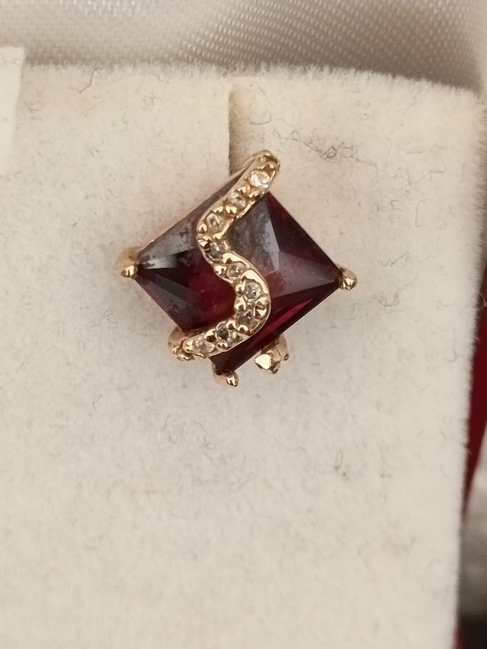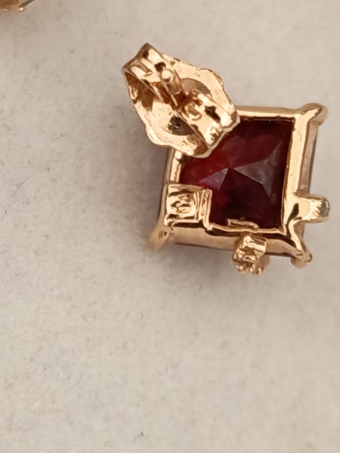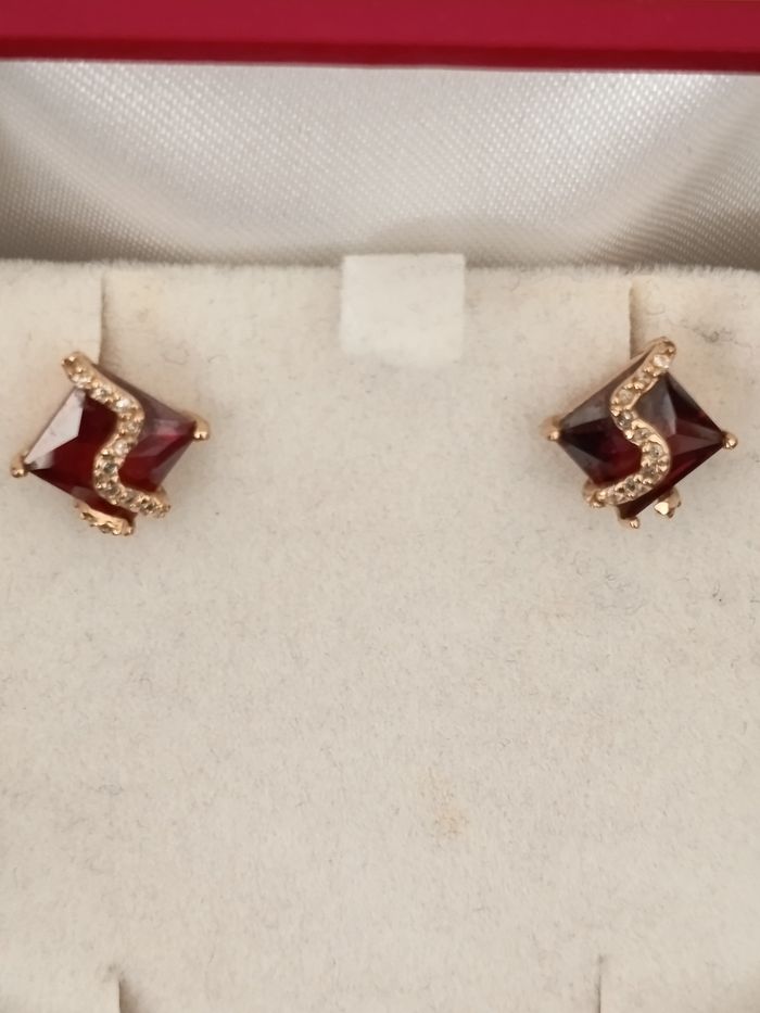 Boucles d'oreilles plaqué or ornée d'une cornaline et de plusieurs petits zirconiums blanc. Poinçon. Très bonne état.