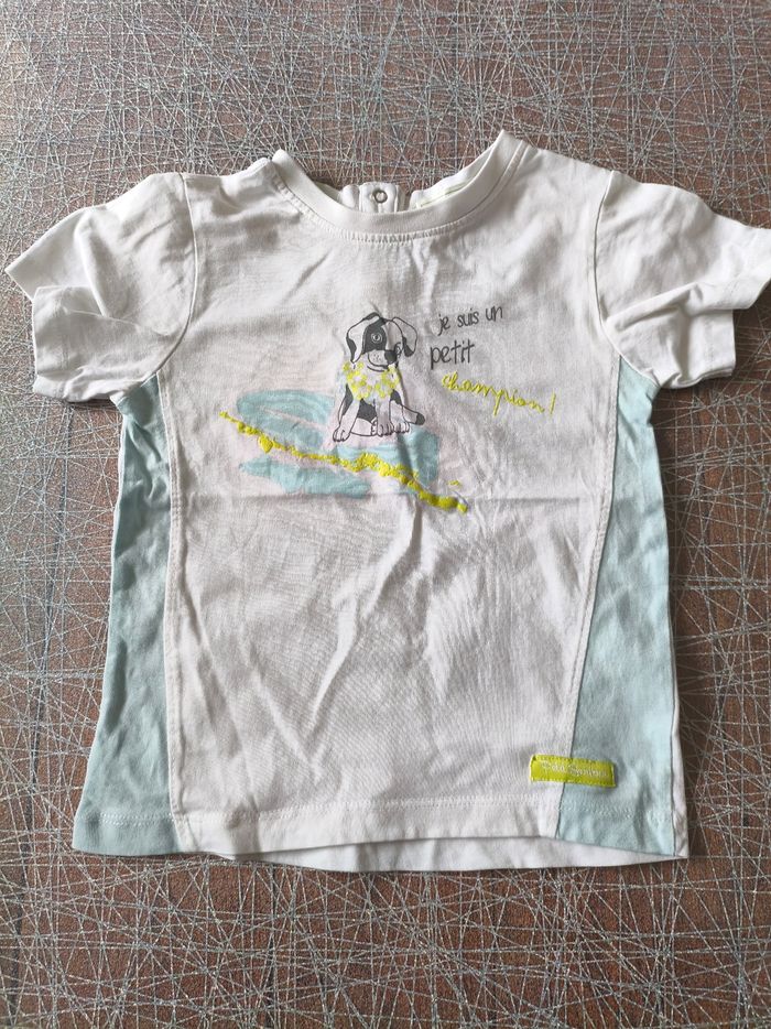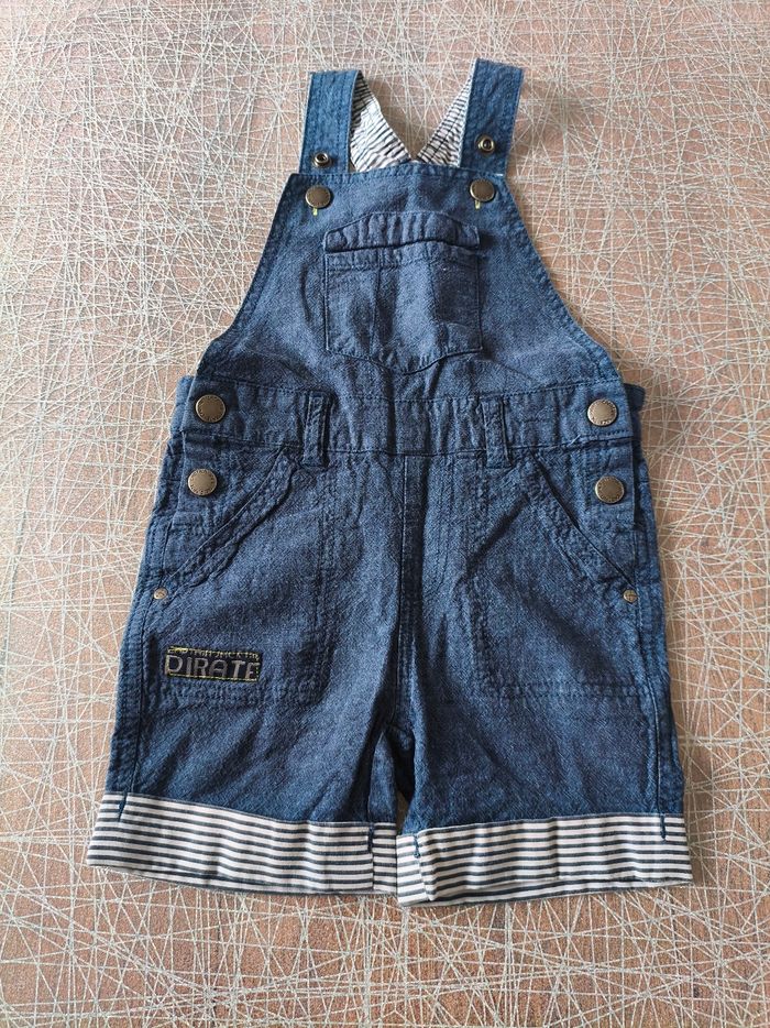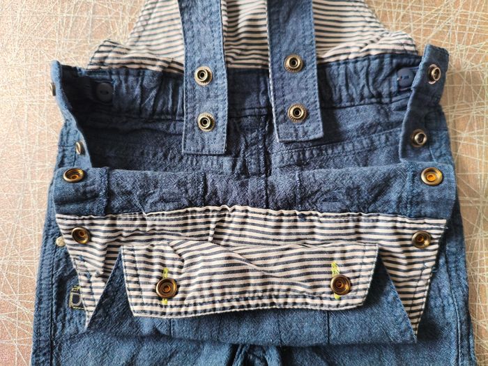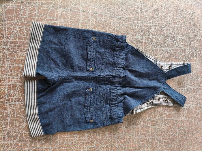 Lot en 24 mois : - 2 T-shirts, pressions au dos fonctionnelles - 1 jean gris/noir, pression ok sans fermeture éclair. Taille élastique et réglable - 1 salopette short. Pas de pression à l'entre jambe, toutes les pressions sont fonctionnelles, réglable à la taille. Bon état, sur la salopette on peut voir le lavage sur la partie rayée et le jean un défaut sans trou et frottement aux genoux. Cf photos.