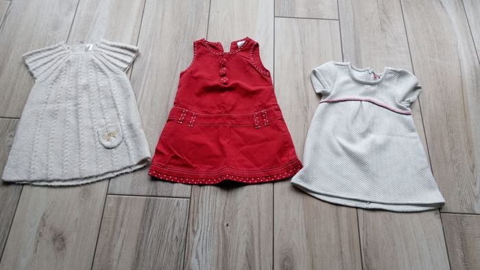 Lot de vĂȘtements fille 👧 en 18 mois comprenant 13 piĂšces. - 1 gilet (tĂąches au niveau des manches) - 1 jupe - 6 robes (une est tachĂ© au niveau du col mais ne se voit pas beaucoup) - 4 tee-shirts Ă  manches longues -1 tee-shirt Ă  manches courtes Diverses marques : tape Ă  l'Ɠil, orchestra... Le reste est en trĂšs bon Ă©tat. PossibilitĂ© de prendre Ă  la piĂšce #vetementsbebefille #18mois #18moisfille #lotvetementsbebe