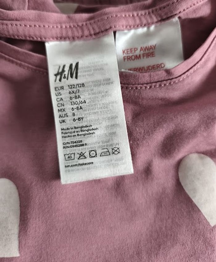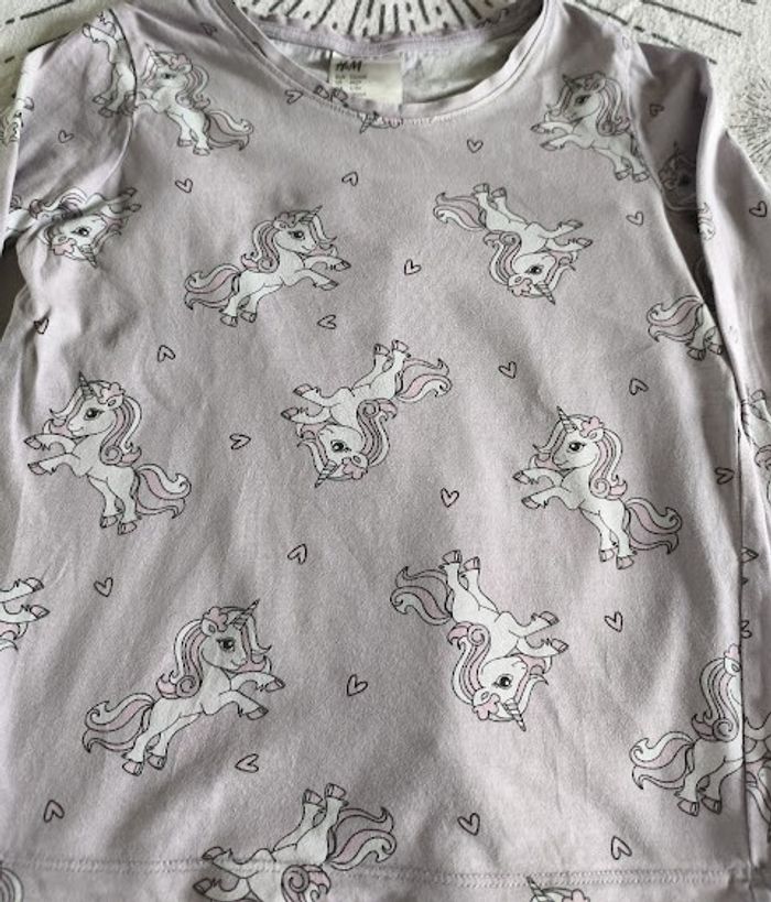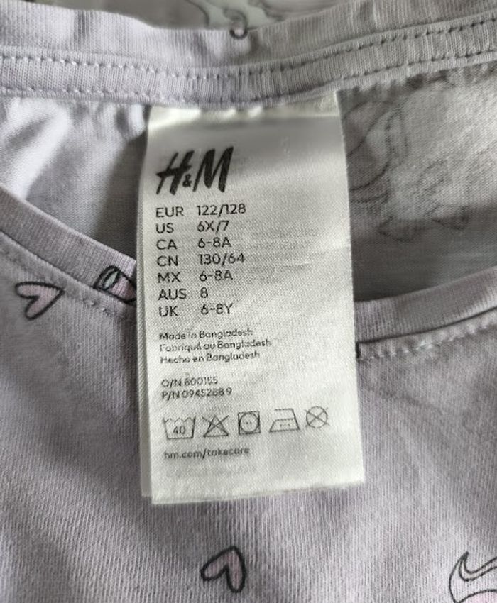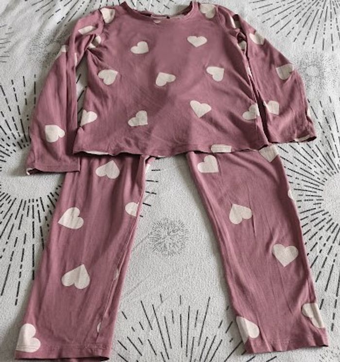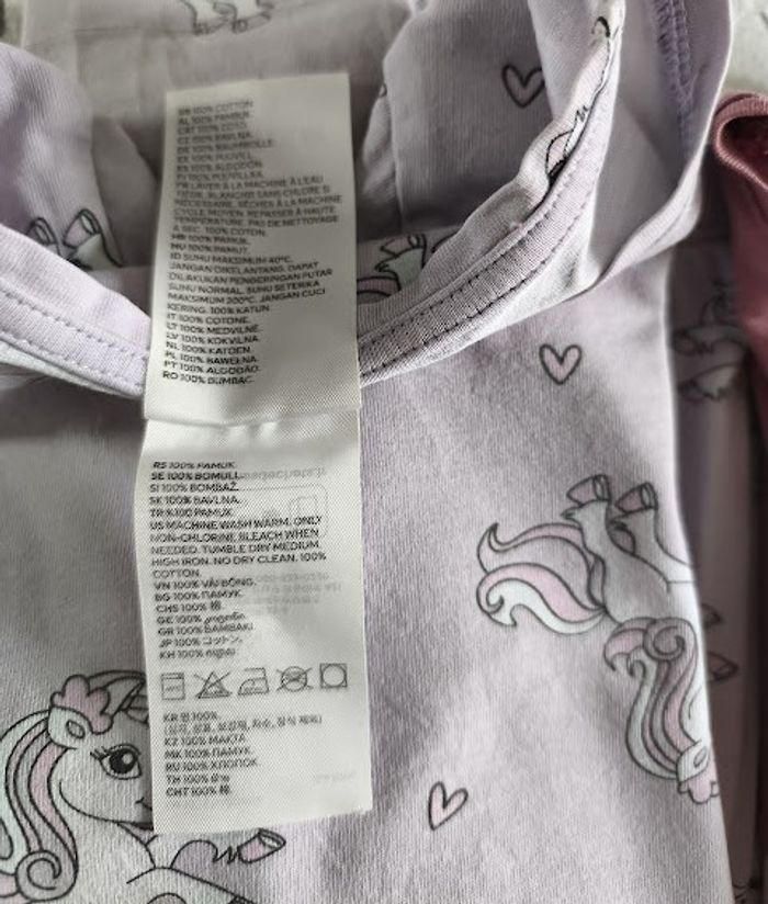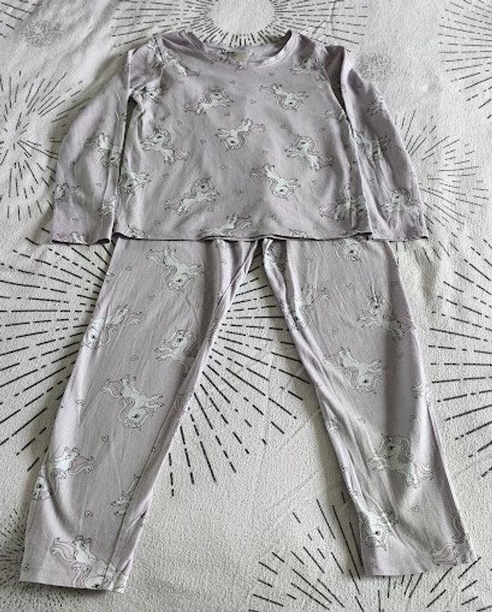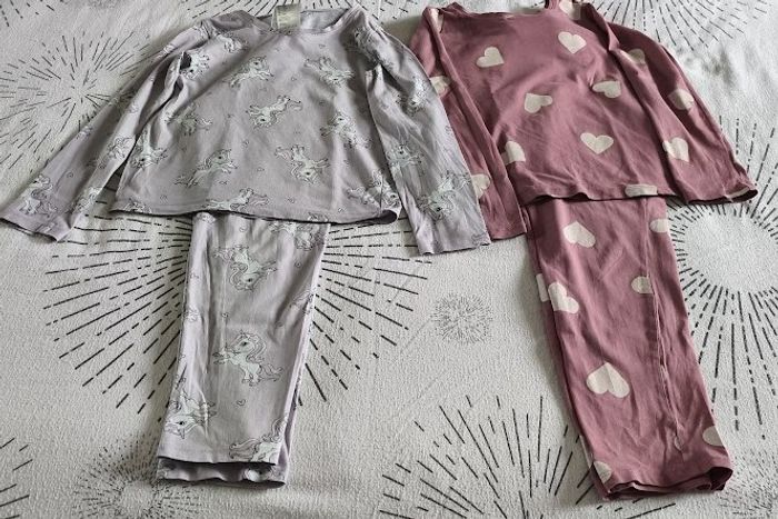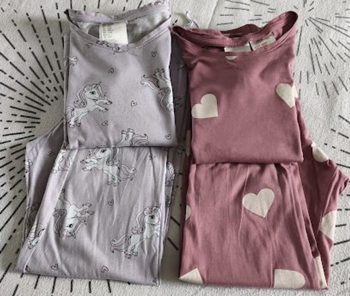 Lot de 2 pyjamas, 1 rose motif cœur, 1 lilas motif licorne, 100% coton, 122/128 cm, 6-8 ans