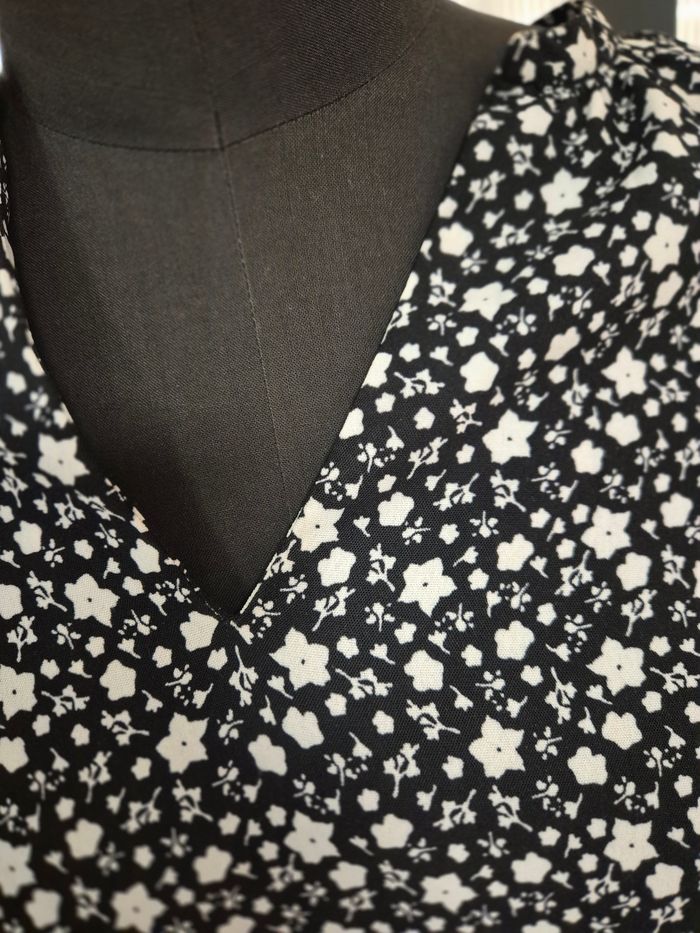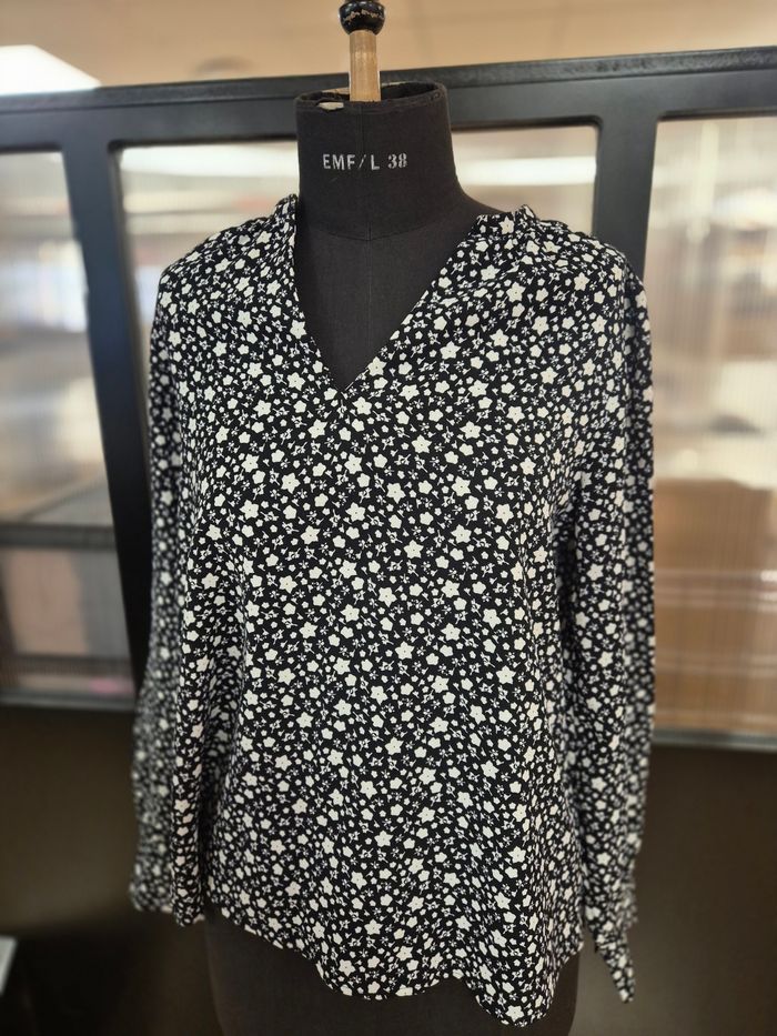Je vends cette jolie blouse fluide de chez Kiabi, parfaite pour un look à la fois chic et décontracté. ​Couleur : Noire avec un imprimé petites fleurs blanches (très facile à assortir). ​Coupe : Féminine avec un joli décolleté en V qui met en valeur sans en faire trop. ​Détails : Manches longues avec finitions boutonnées aux poignets. ​État : Très bon état, portée 1 fois. ​Style : Idéale avec un jean brut pour le quotidien ou une jupe pour un style plus habillé. ​Matière : Tissu léger et agréable à porter.