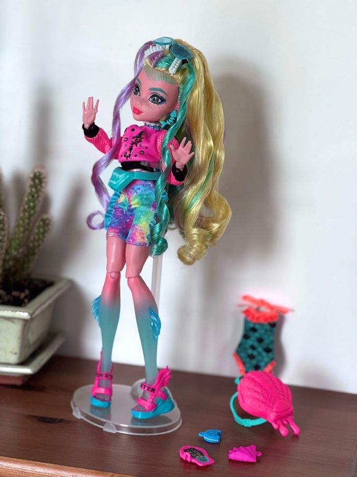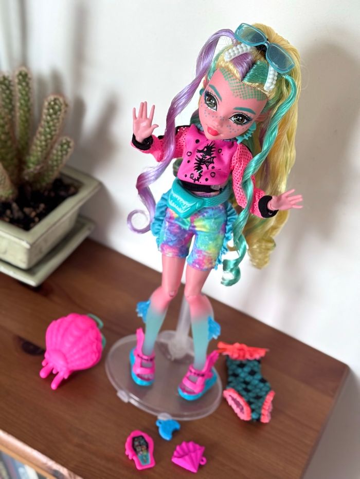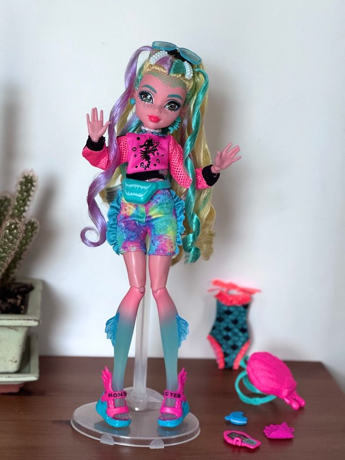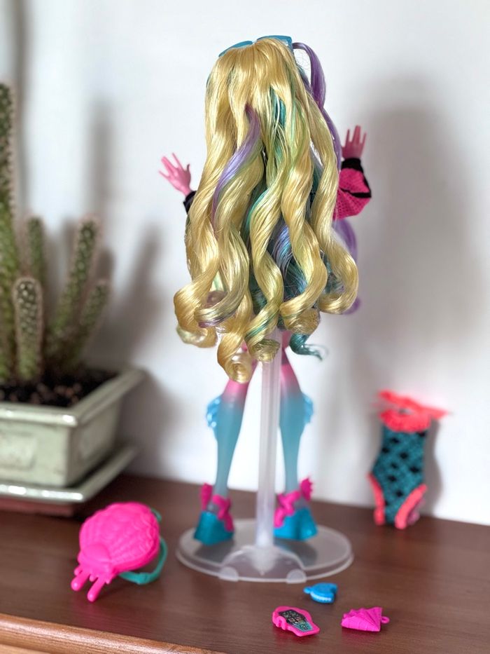 Poupée lagoona en bon état, les cheveux ont été soigneusement coiffés et laqués. Très bon état général mais un défaut de peinture est à déplorer sur sa jambe, voir photo Maison non fumeur, envoi rapide et soigné