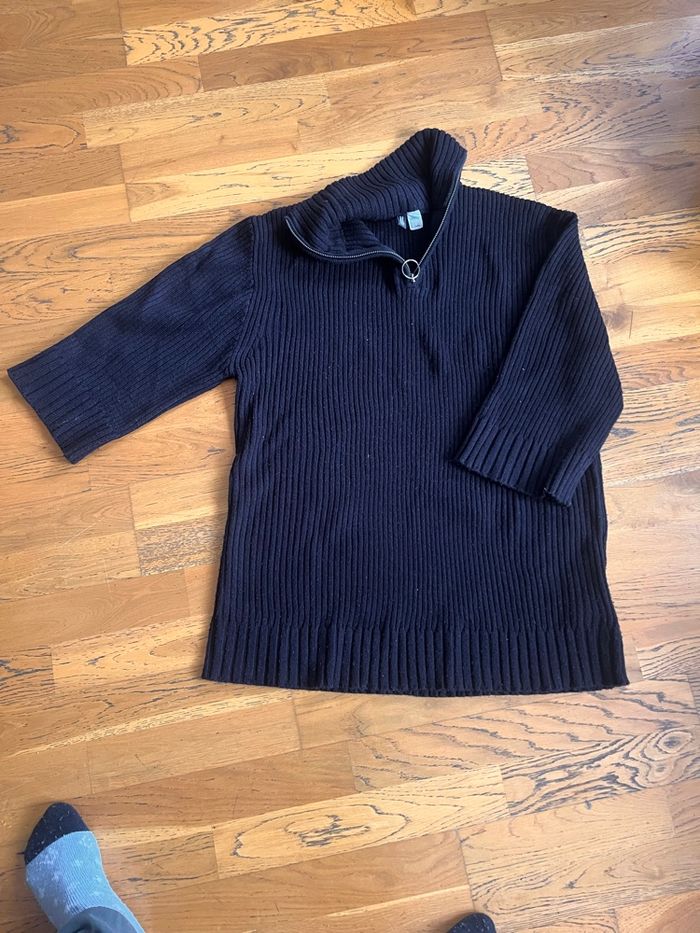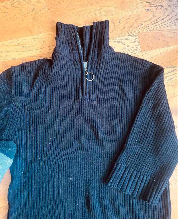 Pull en coton noir très peu porté . Fermeture au col . Longueur 77 cm Largeur 60 cm