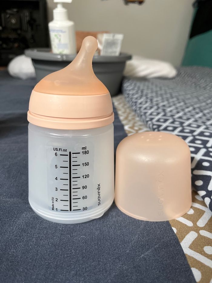 Bonjour, je vend ce biberon avec tétine S dans mes souvenirs convient pour le lait maternel. Utiliser 1 fois pour essayer mai bon bébé ne l’accepte pas donc je le vend.