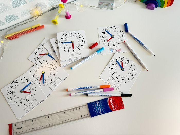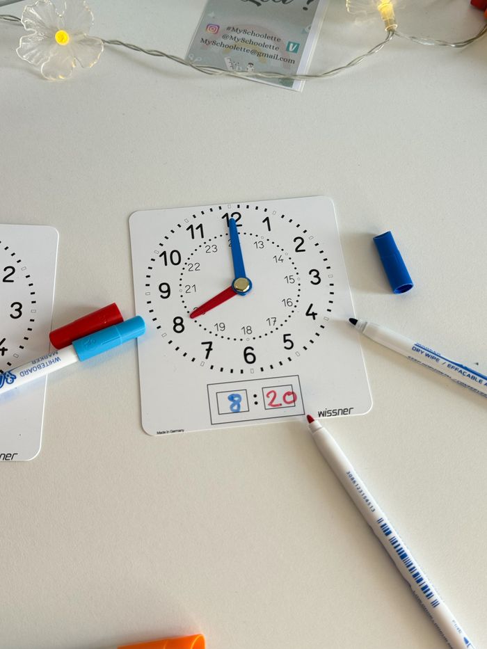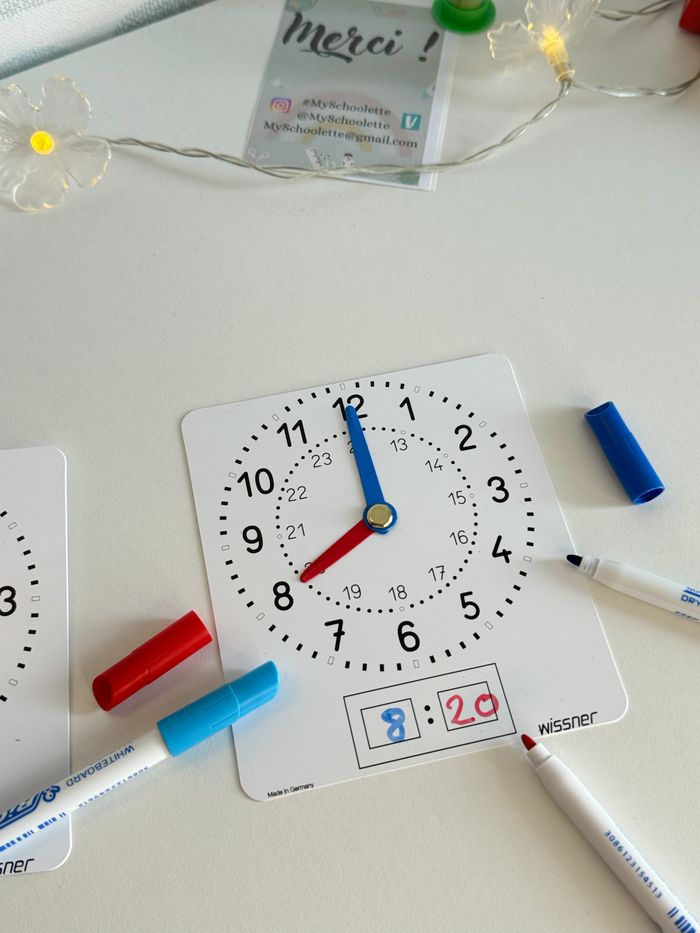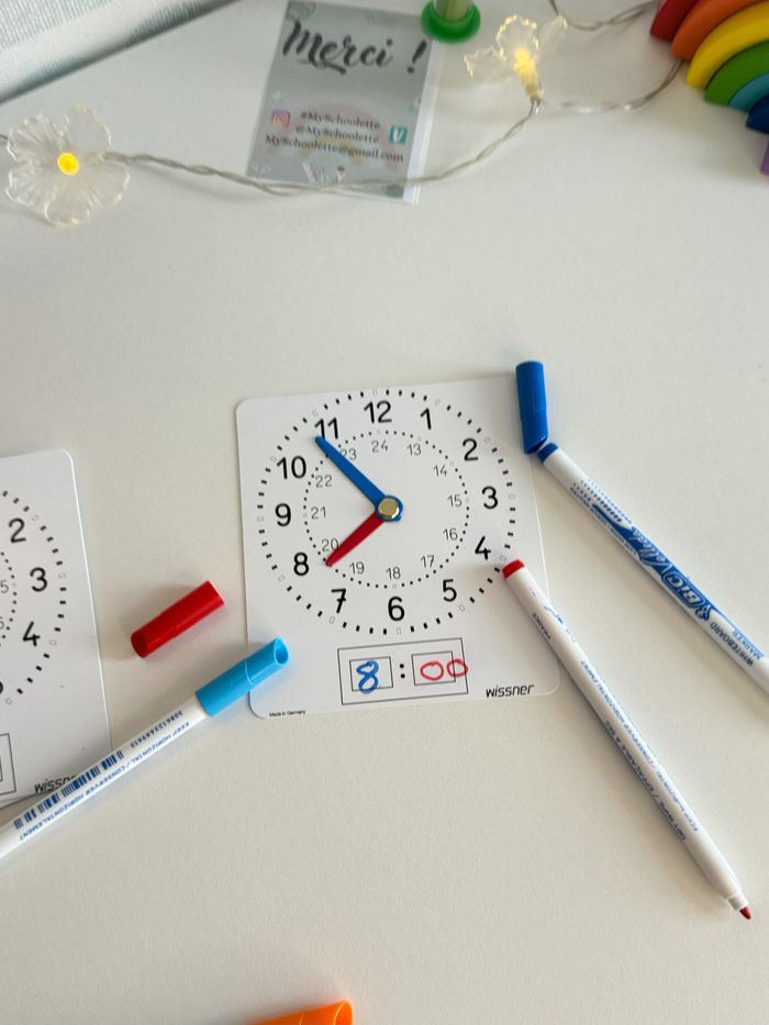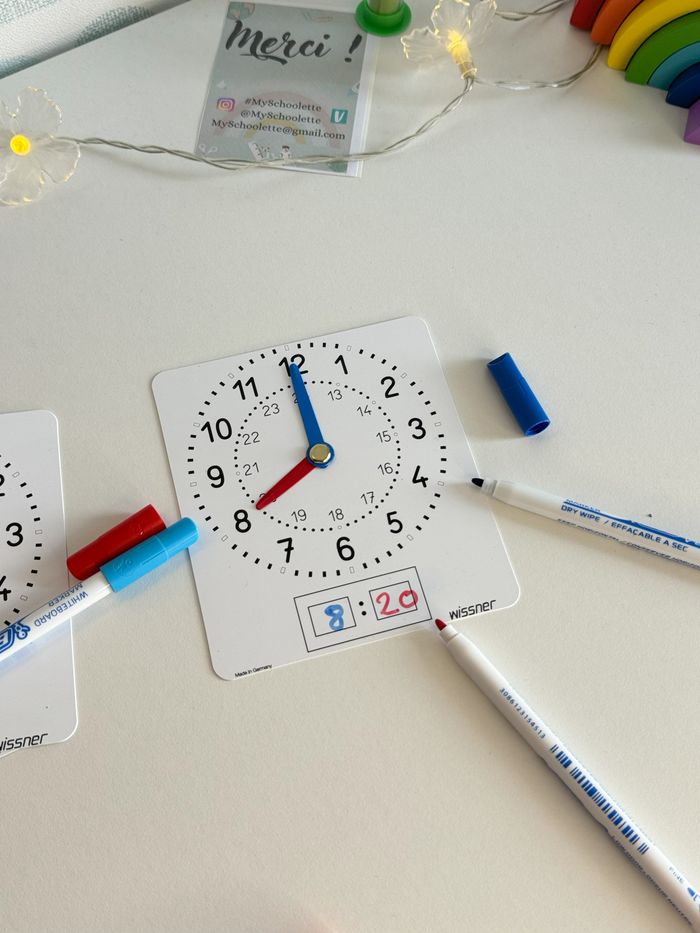 📱A Retrouver également sur mon site ! 📍 Les tarifs sont fixes, non négociables. Merci. Pour en savoir plus sur cette décision, rendez-vous dans ma bio. ---------------------------------------------------------- 📍Vente à l'unité 🕰️ Petite pendule/ horloge à manipuler en plastique souple face ardoise pour écrire avec un feutre effaçable. (vendu sans feutre et à l'unité.) 🕦Lecture de l'heure avec des aiguilles : aiguilles mobiles. 🖼️ Cadran avec graduation et indication des heures du soir. ⌚️ Peut se poser à plat sur un cahier pour travailler et effectuer des exercices. ⏰12 cm de hauteur +10,5 cm de largeur Bords arrondies 💼 Idéal pour manipuler seul à sa table / outil de différenciation et de remédiation. Pour aller plus loin, consulter mes autres annonces, vous trouvez un tampon, pour placer des aiguilles sur un cadran neutre Marque Allemagne. Produit en Allemagne. Fabriqué à partir de plastique recyclé. ❓ Tu veux plusieurs exemplaire ? 🙋‍♀️ Contacte moi pour ajuster le prix ℹ️ Les tarifs ne sont pas négociables. Merci de votre compréhension. Pour plus d'info pour les raisons de ce choix 👉Ma bio #manipulation #jouerenapprenant #jeupedagogique #mathematiques#mathematiques#mathematiques #decimaux #ief #instructionenfamille #unschooling #entraînement #training #nombres #numeration #jouer#jouer#jouer #montessori#montessori#montessori #maths#maths#maths #MySchoolette #scula #montessori#montessori#montessorielementaire #montessori#montessori#montessoriactivités #montessoriactivity #autonomie #ecole #écolealamaison #cp #ce1 #ce2 #cycle1 #cycle2 #calcul#calcul#calcul #singapour#singapour#singapour #methodesingapour #singapour#singapour#singapourmaths #mathssingapour #singapour#singapour#singapource1 #singapource2