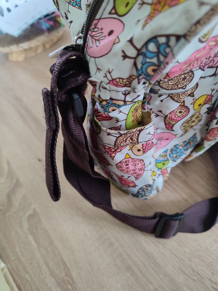 Je vends un sac à langer , oiseau. Il a bien servi mais reste en bon état. Sac à langer , avec un tapis à langer , sangle et accroche poussette intégré. Multi poche. Legé défaut sur le bas extérieur.