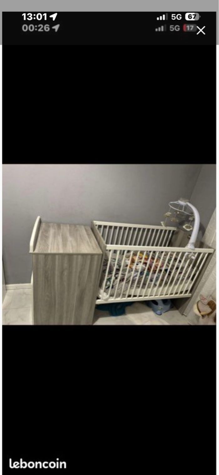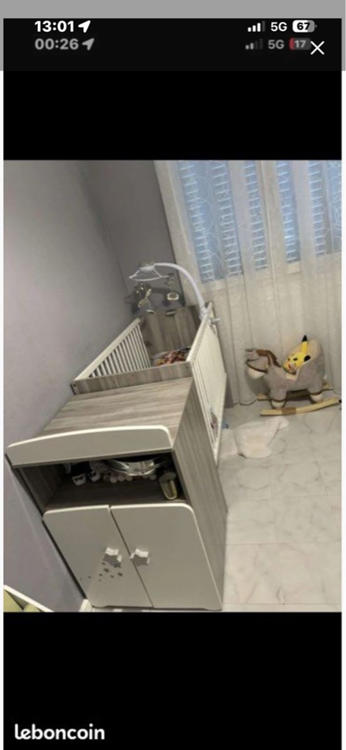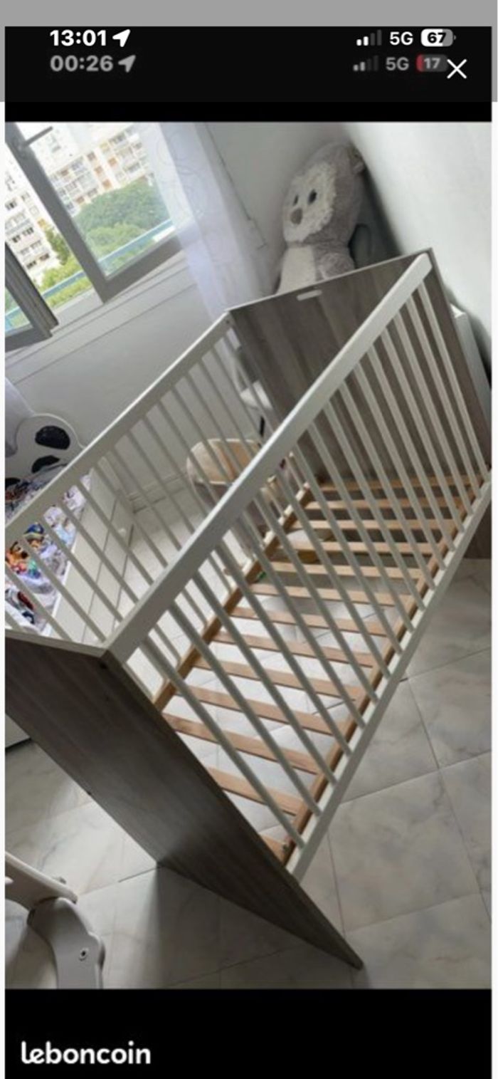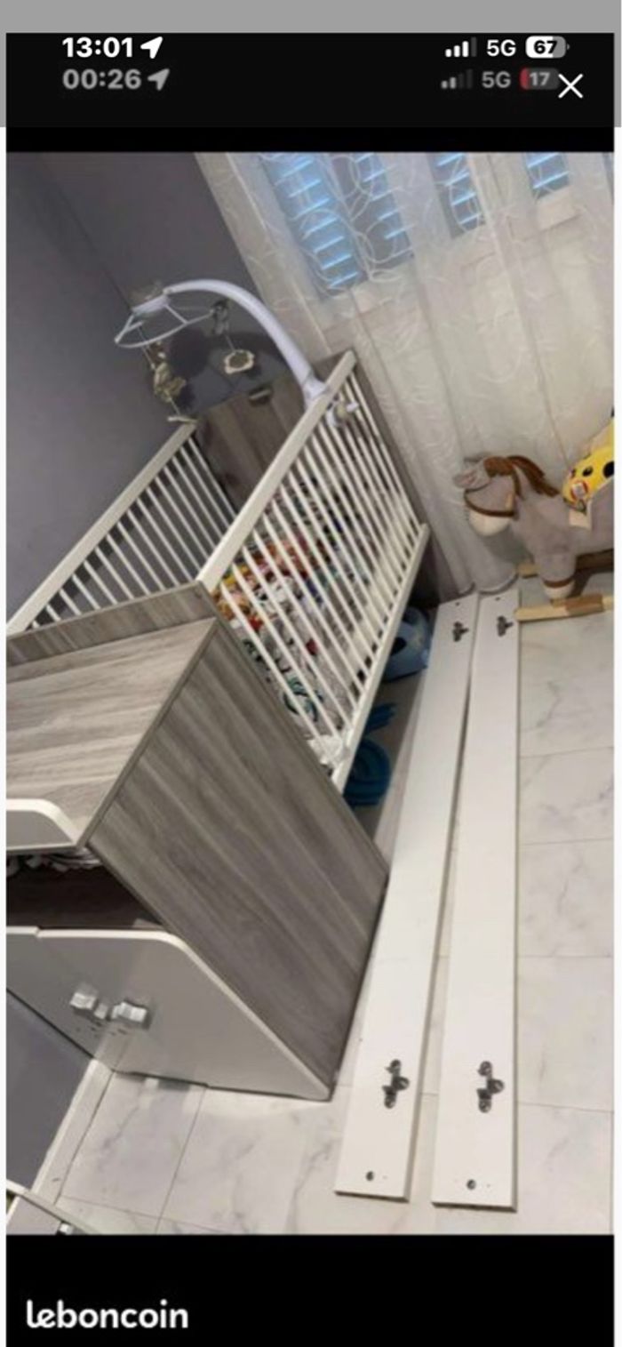 Je vends ce lit à barreau évolutif qui ce transforme en lit enfant 1 place. Avec table à langer ( qui se transforme en placard ( commode ). Bon état général. Présente quelque imperfections mais avec le matelas dessus on ne les vois plus. Vendu sans matelas. Sommier inclus pour lit bébé. À venir chercher sur place. Il est déjà démonté.