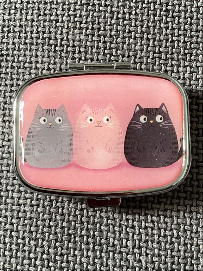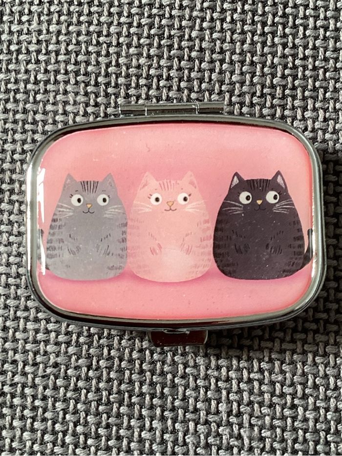 Pilulier rectangulaire 3 chats rondouillards sur fond rose - photo numéro 1